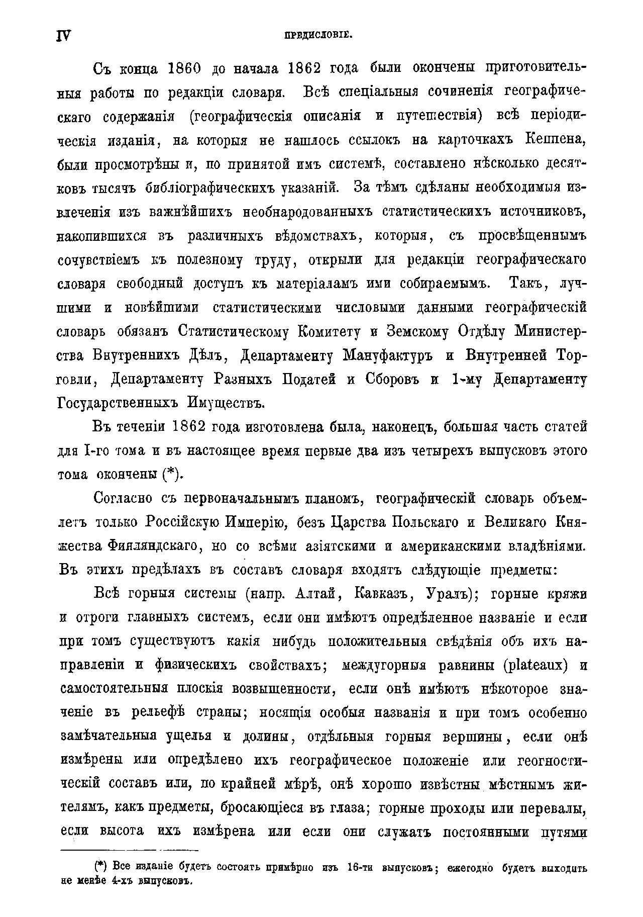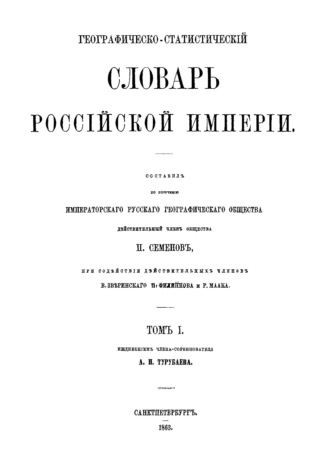 Знаменитый путешественник и географ, статистик и геолог, знаток живописи и ботаник, историко-географ и энтомолог – научная деятельность Петра Петровича Семёнова-Тян-Шанского отличалась замечательной разнообразностью. Но одно направление следует подчеркнуть особо. Благодаря Семёнову был составлен обширный труд по географическому описанию России. Такого словаря не знала тогда ни одна из западноевропейских стран. Пятитомный географическо-статистический словарь издавался с 1863-го по 1885 год. Здесь тщательно собраны все имевшиеся тогда сведения о русских реках, озерах, морях, горных хребтах, населенных пунктах, губерниях, уездах. «Наша слава есть слава русской земли», – с гордостью говорил ученый о трудах и подвигах русских исследователей.
