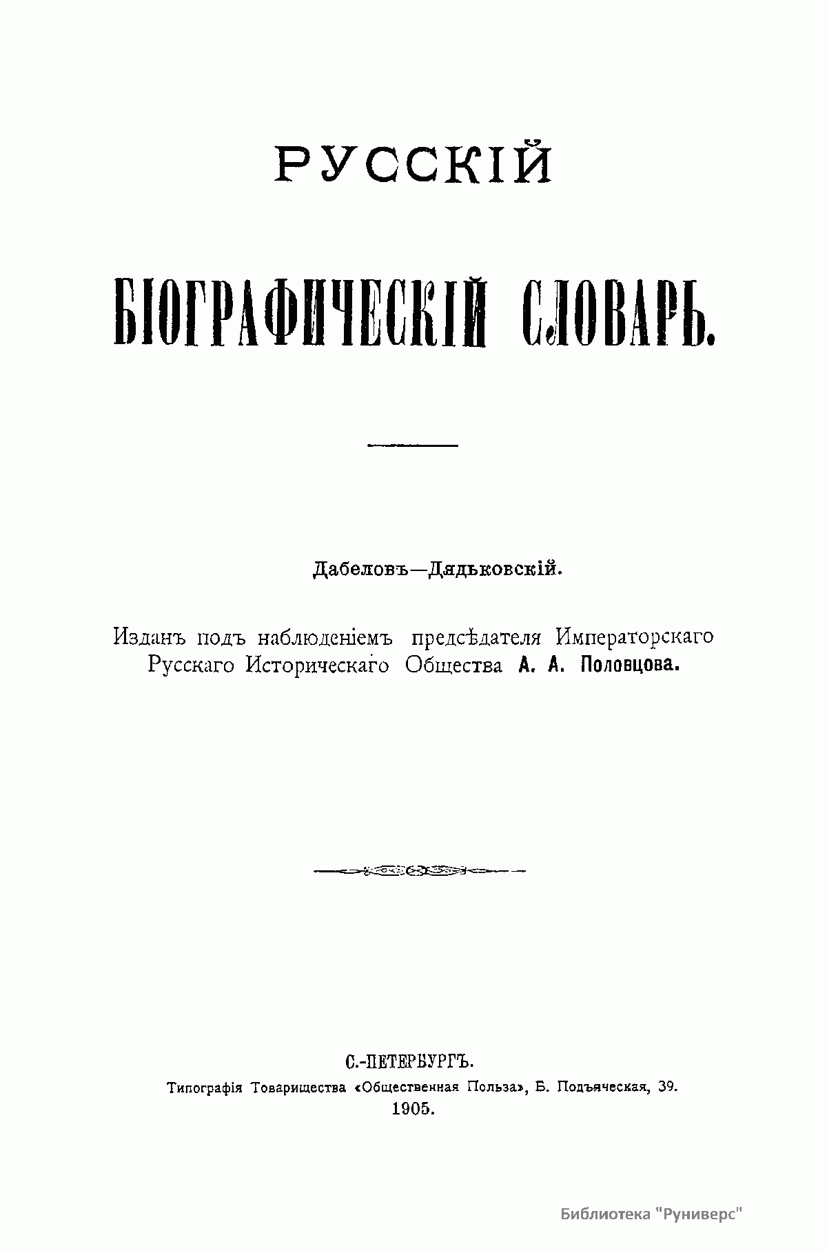 Русский биографический словарь. Том VI. Дабелов - Дядьковский