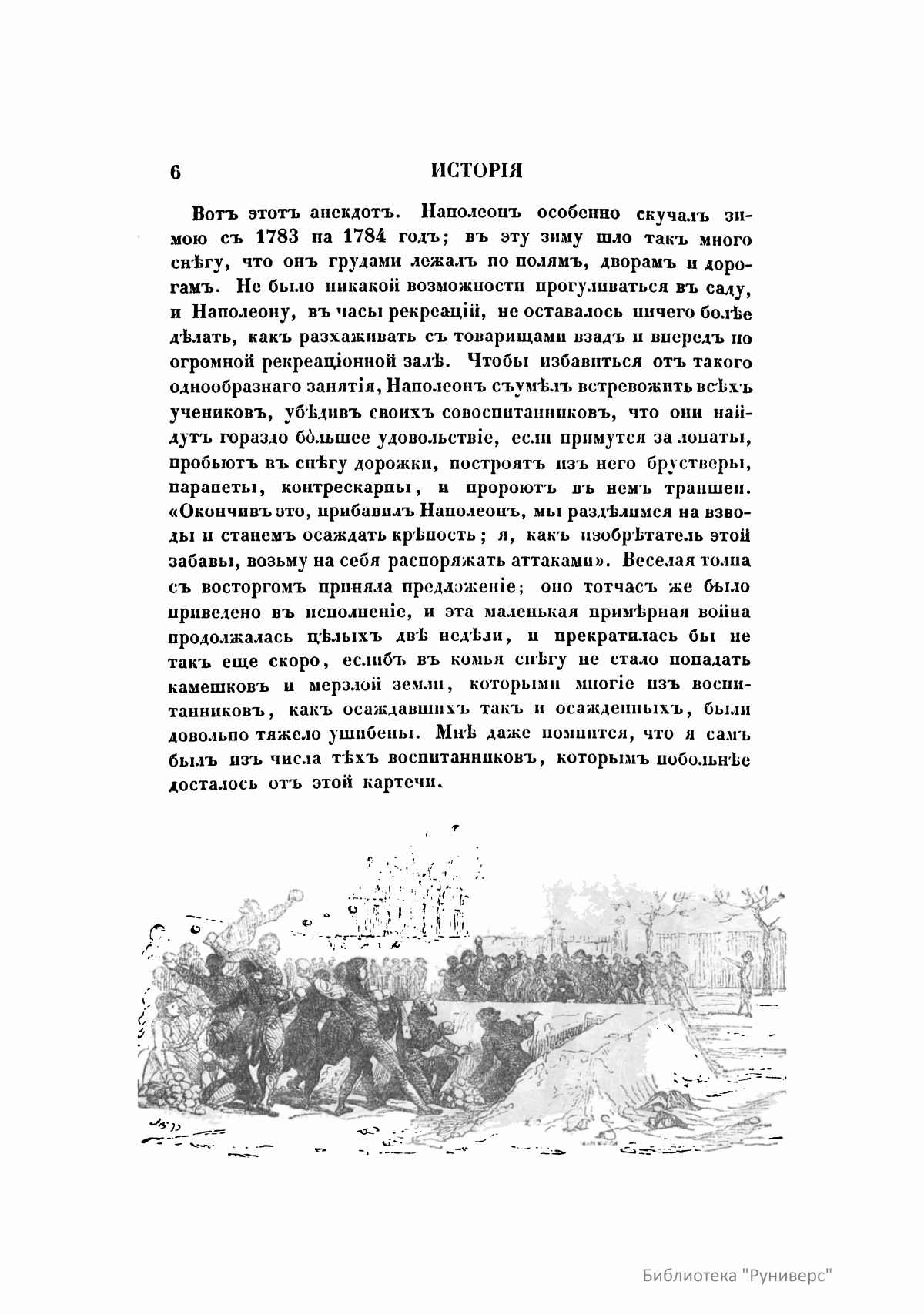 Настоящее издание – иллюстрированный перевод книги П. М. Лорана де лАрдеша (Paul-Matie-Laurent de l’Ardèche; 1793 – 1877) «История императора Наполеона» (Histoire De L’Empereur Napoleon), вышедшей в 1839 году в Париже. В парижском издании было 830 страниц, 500 рисунков официального баталиста, историографа наполеоновской армии Антуана-Шарля-Ораса Верне (Antoine-Charles-Horace Vernet, 1758 – 1836), а также 44 цветных изображения типов военной униформы, автором которых был ученик Верне – Жозеф-Луи-Ипполит Беланже (Joseph-Louis-Hippolyte Bellange). История написана человеком, восторгавшимся гением Наполеона. В русском иллюстрированном издании В. Семененко-Крамаревского и А. Красовского, вышедшем в 1842 году в Санкт-Петербурге под названием «История Наполеона», 640 страниц, цветные иллюстрации в это издание не вошли. Наполеон I (Наполеон Бонапарт, 1769 – 1821), французский император в 1804 – 1814 гг. и в марте – июне 1815 г. Уроженец Корсики. Начал службу в войсках в 1785 г. в чине младшего лейтенанта артиллерии. В период Великой французской революции достиг чина бригадного генерала, при Директории – командующего армией. В ноябре 1799 г. совершил государственный переворот (18 брюмера), в результате которого стал первым консулом, фактически сосредоточившим в своих руках с течением времени всю полноту власти. В 1804 г. провозглашен императором. Благодаря победоносным войнам значительно расширил территорию империи. С поражением в войне 1812 г. против России начался период распада империи Наполеона I. Вступление в 1814 г. войск антифранцузской коалиции в Париж вынудило Наполеона отречься от престола. Он был сослан на остров Эльба. Вновь занял французский престол в марте 1815 г. После поражения при Ватерлоо вторично отрекся от престола (22 июня 1815). Последние дни жизни провел на острове св. Елены пленником англичан.