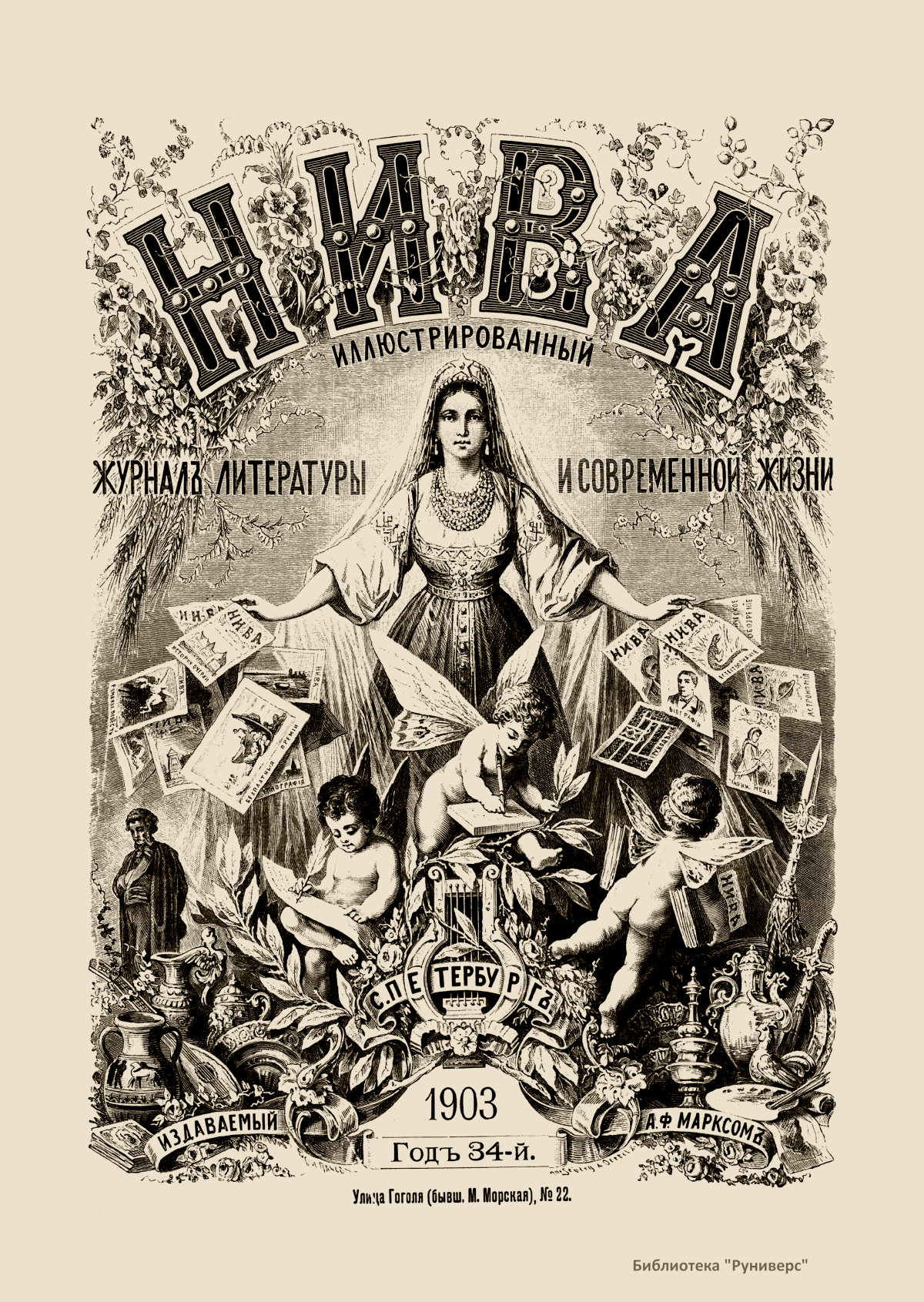 «Нива» — популярный еженедельный русский журнал с приложениями, издававшийся со второй половины XIX до начала XX века, носил подзаголовок «Журнал литературы, политики и современной жизни». Журнал был любимым детищем А. Ф. Маркса, возглавлявшего свое издательство вплоть до своей смерти в 1904 г. Позиционировалась «Нива» как иллюстрированный журнал для семейного чтения и был ориентирован, главным образом, на обывателя. В журнале публиковались литературные произведения, исторические, научно-популярные очерки, репродукции и гравюры картин современных художников. Материалы политического и общественного содержания также сопровождались многочисленными иллюстрациями. Среди известных литераторов, печатавшихся в журнале, были А. К. Толстой, Ф. И. Тютчев, Л. Н. Толстой, А. А. Фет, А. П. Чехов, Максим Горький, Корней Чуковский, Анна Ахматова, Иван Бунин и многие другие. Благодаря «Ниве» сочинения многих современных авторов добрались до самых отдаленных областей России.
