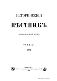 Историческiй вѣстникъ. Историко-литературный журналъ. Томъ XVI