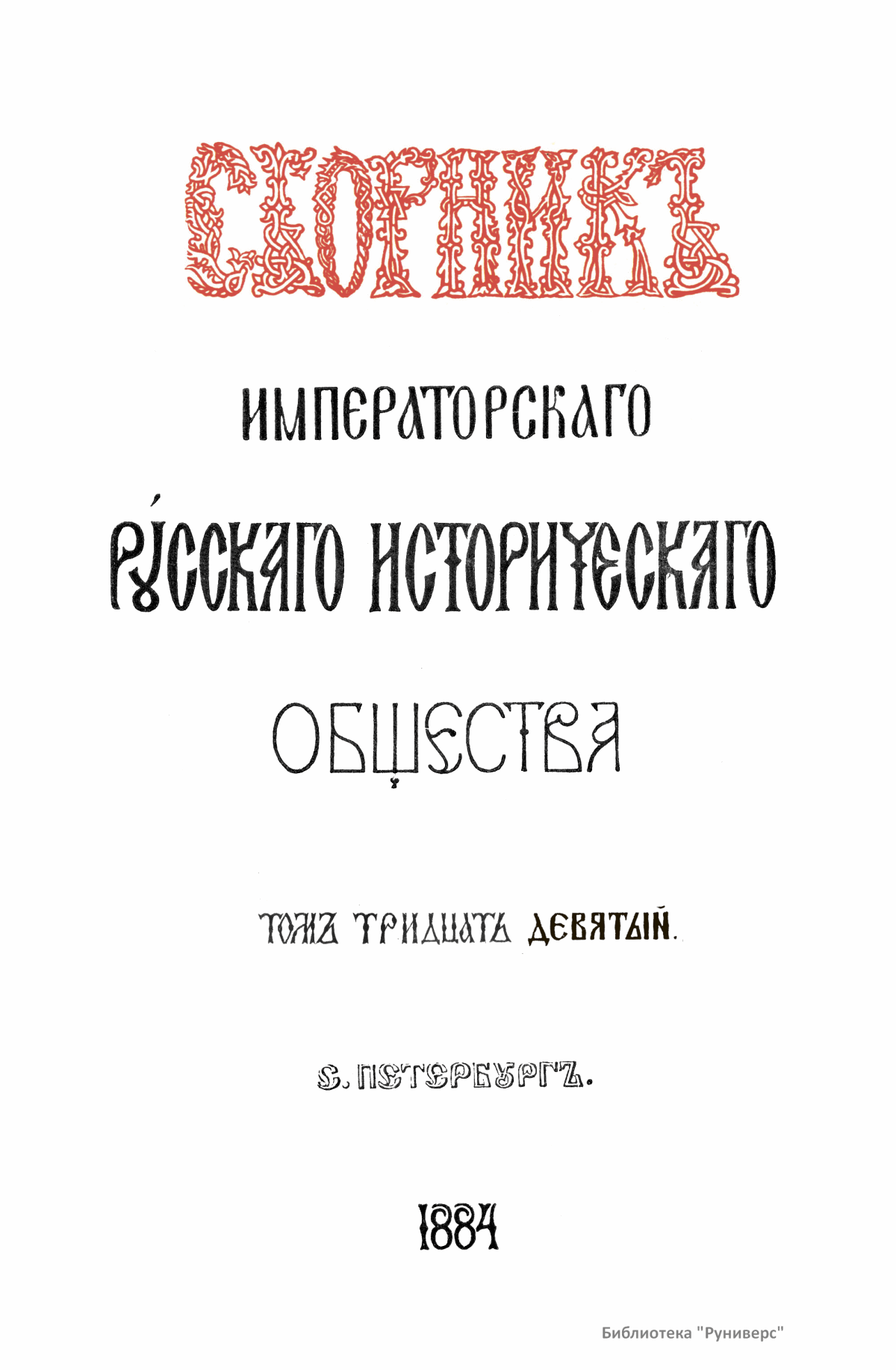 Сборникъ Русскаго историческаго общества. Томъ тридцать девятый