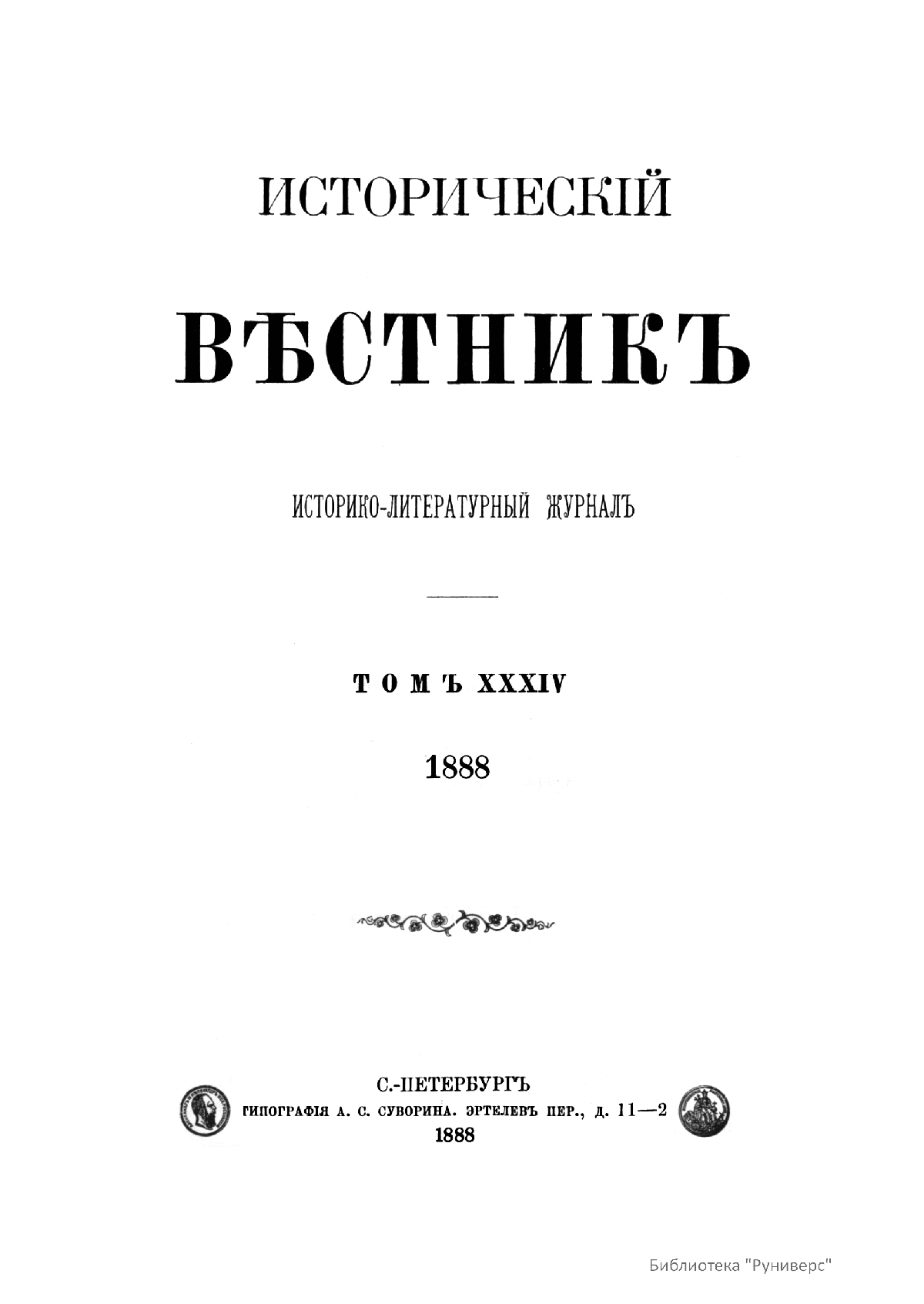 Исторический вестник. Историко-литературный журнал. Том XXXIV