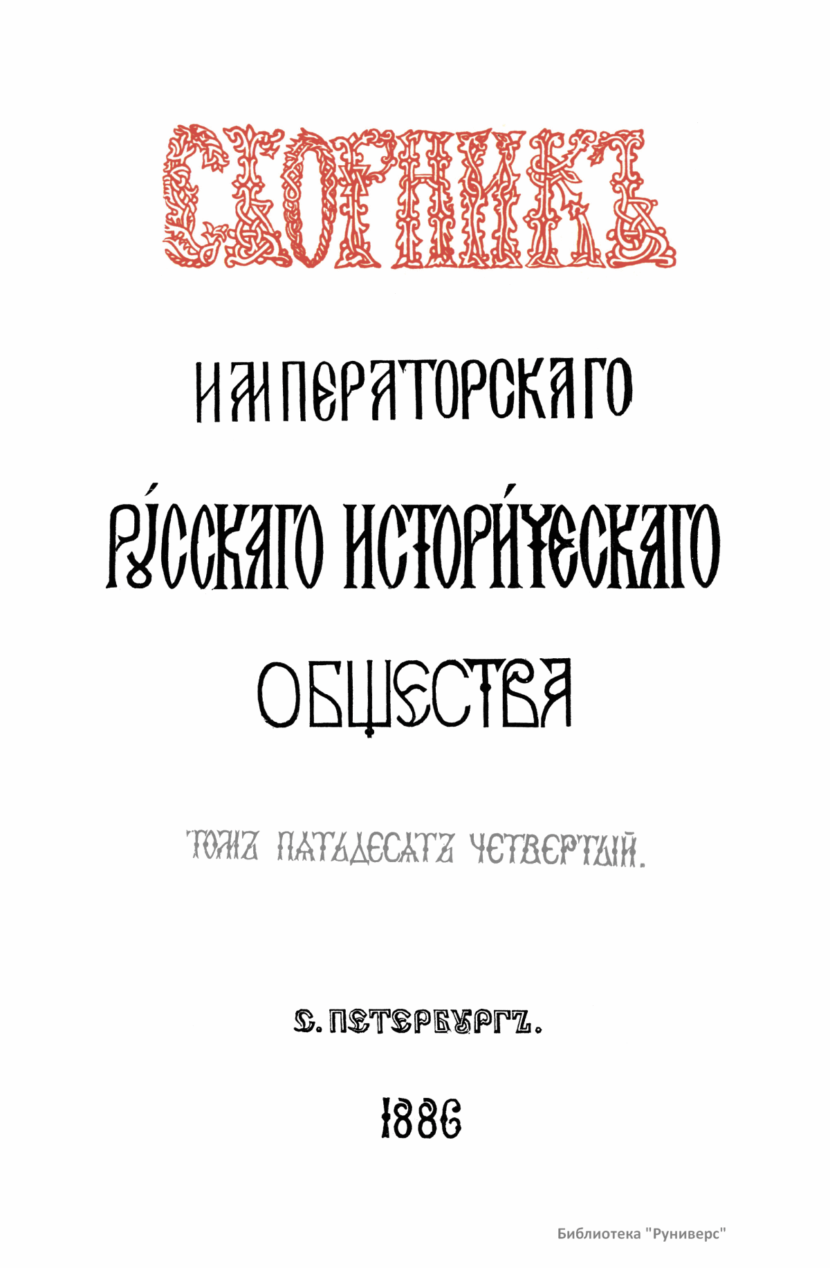 Сборникъ Русскаго историческаго общества. Томъ пятьдесятъ четвертый