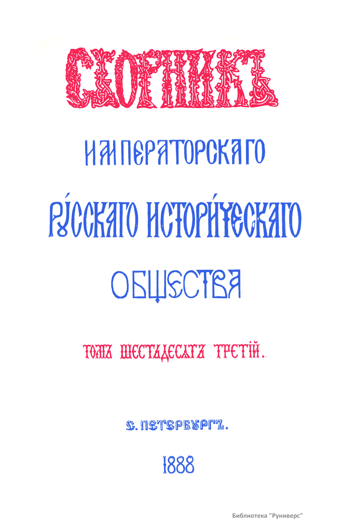 Сборникъ Русскаго историческаго общества. Томъ шестьдесятъ третiй
