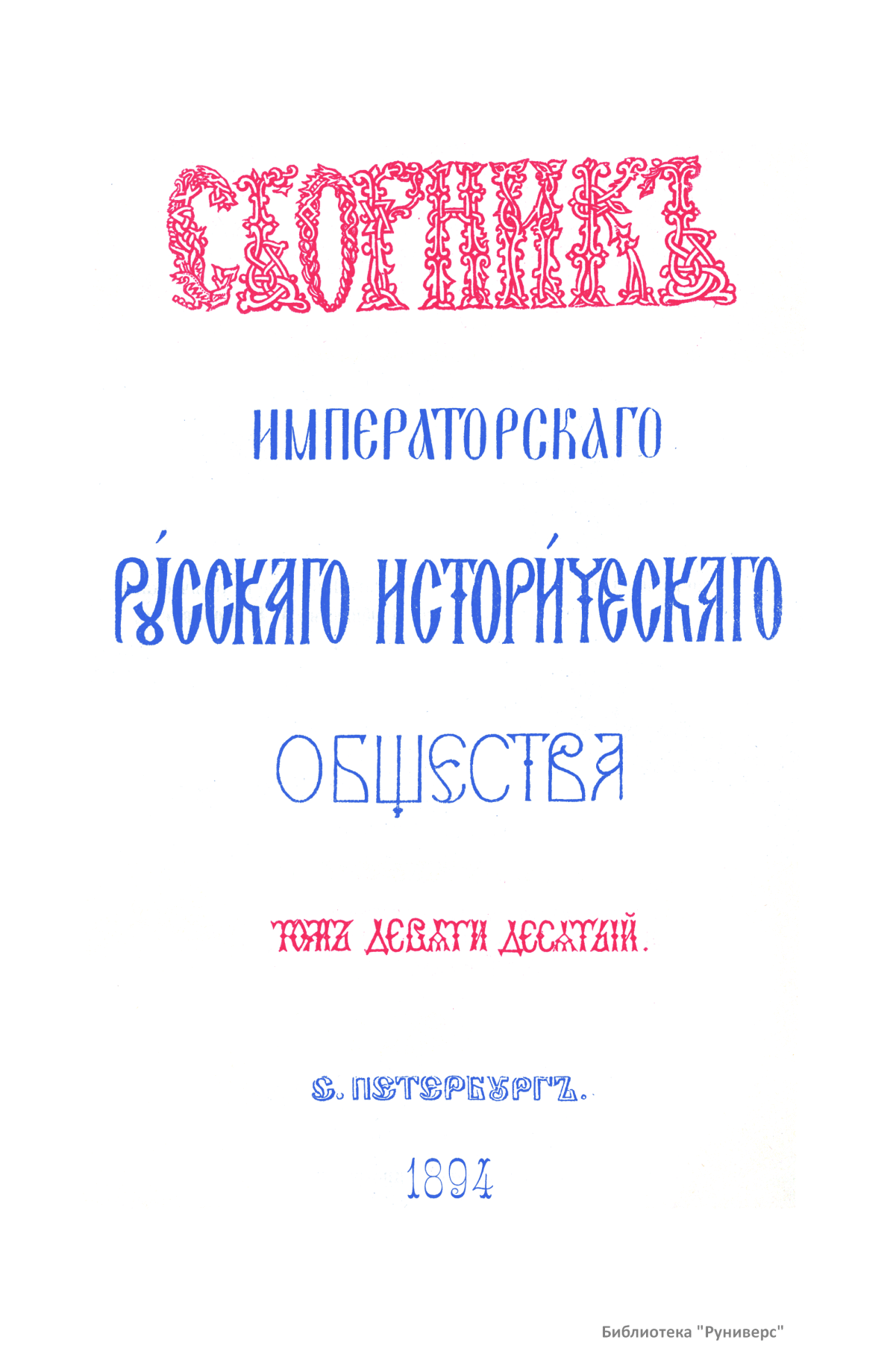 Сборникъ Русскаго историческаго общества. Томъ девяти десятый