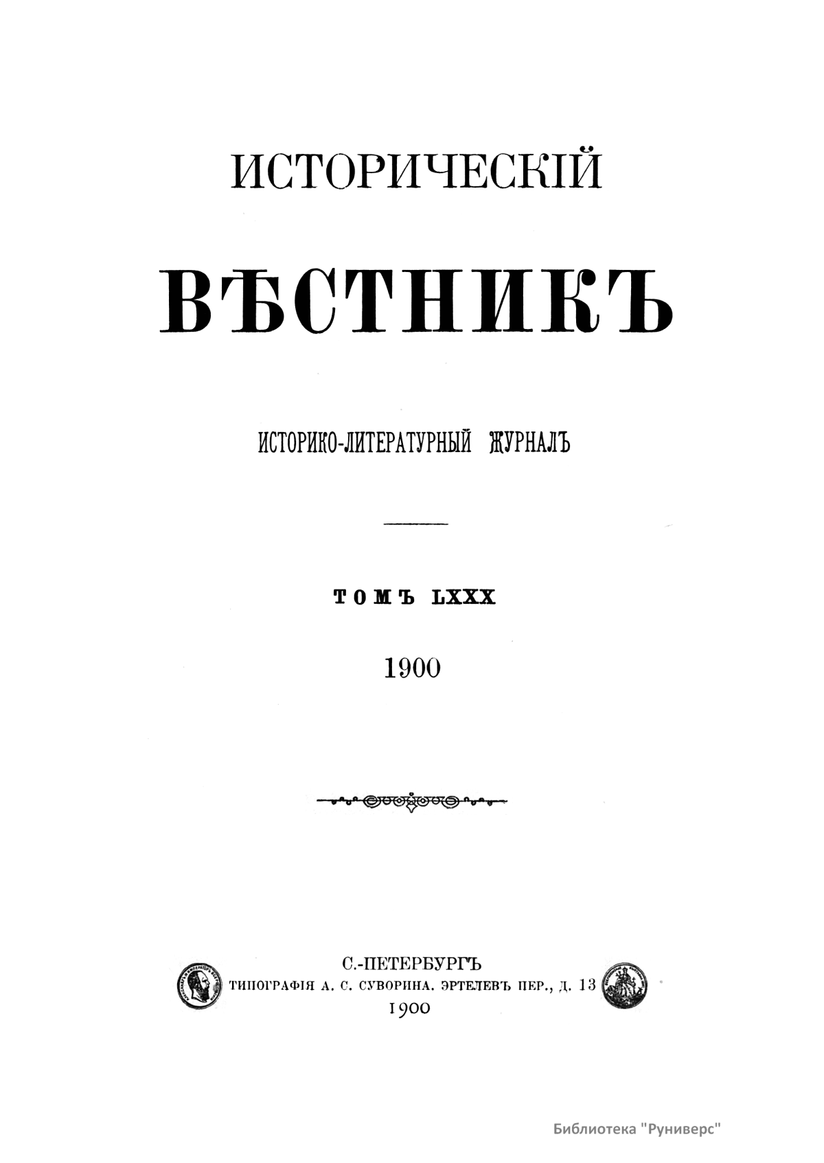 Исторический вестник. Историко-литературный журнал. Том LXXX