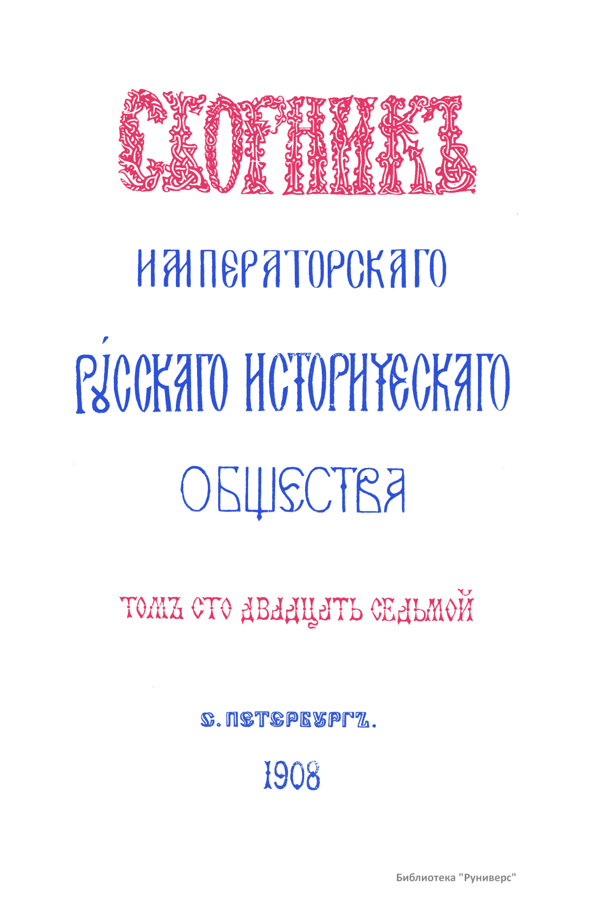 Сборникъ Русскаго историческаго общества. Томъ сто двадцать седьмой