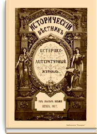 «Исторический вестник» - русский ежемесячный историко-литературный журнал. Издавался в Санкт-Петербурге с 1880-го по 1917 г. Журнал был основан А.С. Сувориным и С.Н. Шубинским с целью «знакомить читателей в живой, общедоступной форме с современным состоянием исторической науки и литературы в России и Европе». Вышло 150 тт. Каждый том состоял из трёх ежемесячных выпусков, имел свою нумерацию страниц, оглавление, список иллюстраций. Журнал приобрёл устойчивую популярность среди читателей, заняв прочное место в «триумвирате» русских исторических журналов наряду с «Русским архивом» и «Русской стариной». опережая их по количеству подписчиков. Отличием «Исторического вестника» было то, что он не помещал на своих страницах необработанных, сырых материалов. С другой стороны, журнал приближался по своему типу к журналам общелитературного образца, сочетая в себе коммерческий успех и доступное изложение материала.