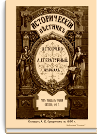«Исторический вестник» - русский ежемесячный историко-литературный журнал. Издавался в Санкт-Петербурге с 1880-го по 1917 г. Журнал был основан А.С. Сувориным и С.Н. Шубинским с целью «знакомить читателей в живой, общедоступной форме с современным состоянием исторической науки и литературы в России и Европе». Вышло 150 тт. Каждый том состоял из трёх ежемесячных выпусков, имел свою нумерацию страниц, оглавление, список иллюстраций. Журнал приобрёл устойчивую популярность среди читателей, заняв прочное место в «триумвирате» русских исторических журналов наряду с «Русским архивом» и «Русской стариной». опережая их по количеству подписчиков. Отличием «Исторического вестника» было то, что он не помещал на своих страницах необработанных, сырых материалов. С другой стороны, журнал приближался по своему типу к журналам общелитературного образца, сочетая в себе коммерческий успех и доступное изложение материала.