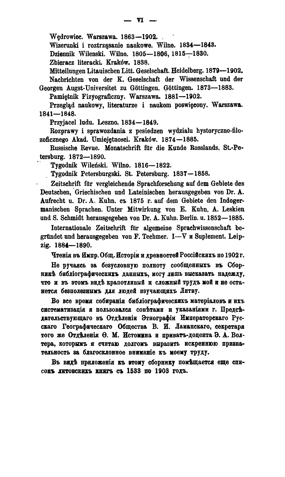 Сборникъ библiографическихъ матерiаловъ для географiи, исторiи, исторiи права, статистики и этнографiи Литвы с приложенiемъ списка литовскихъ и древнепрусскихъ книгъ съ 1553 по 1903 г