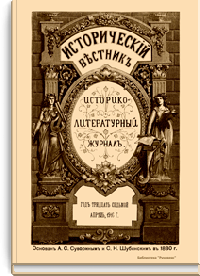 «Исторический вестник» - русский ежемесячный историко-литературный журнал. Издавался в Санкт-Петербурге с 1880-го по 1917 г. Журнал был основан А.С. Сувориным и С.Н. Шубинским с целью «знакомить читателей в живой, общедоступной форме с современным состоянием исторической науки и литературы в России и Европе». Вышло 150 тт. Каждый том состоял из трёх ежемесячных выпусков, имел свою нумерацию страниц, оглавление, список иллюстраций. Журнал приобрёл устойчивую популярность среди читателей, заняв прочное место в «триумвирате» русских исторических журналов наряду с «Русским архивом» и «Русской стариной». опережая их по количеству подписчиков. Отличием «Исторического вестника» было то, что он не помещал на своих страницах необработанных, сырых материалов. С другой стороны, журнал приближался по своему типу к журналам общелитературного образца, сочетая в себе коммерческий успех и доступное изложение материала.