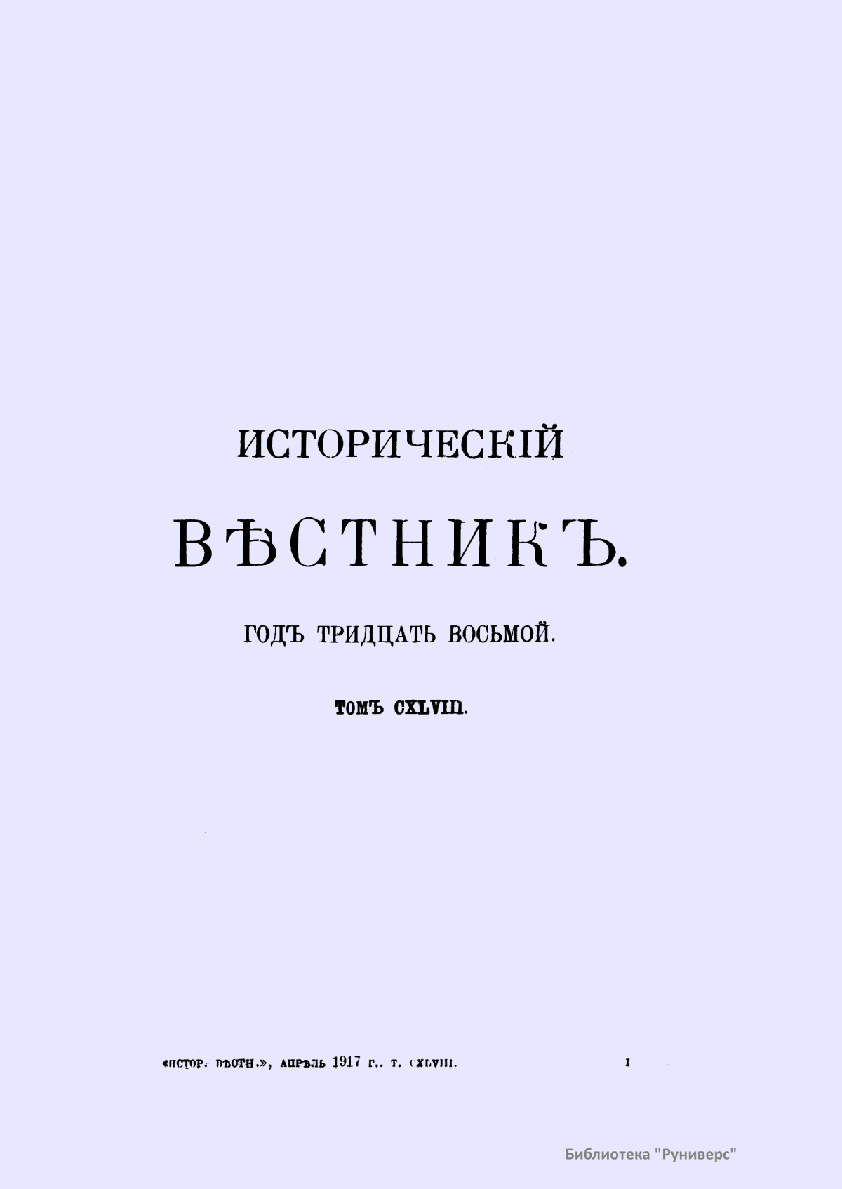 Исторический вестник. Историко-литературный журнал. Том CXLVIII