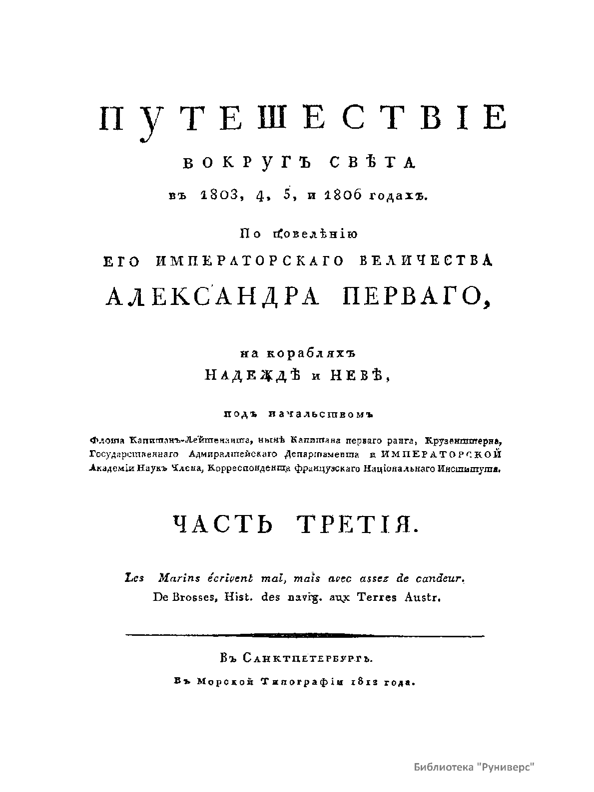 Путешествiе вокругъ свѣта въ 1803, 4, 5 и 1806 годахъ. Часть третiя