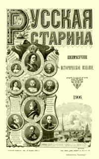 «Русская старина», ежемесячный исторический журнал, выходил в Петербурге в 1870-1918. Основан, издавался и редактировался (1870-1892) М. И. Семевским при участии В. И. Семевского. Последующими редакторами были Н. К. Шильдер (1892-1896), Н. Ф. Дубровин (1896-1904), военные историки С. П. Зыков, П. Н. Воронов.