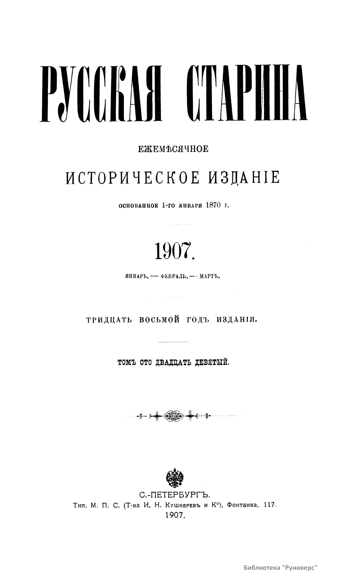 Русская старина. Томъ CXXIX. 1907. Выпуски 1-3