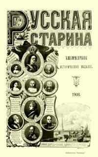 «Русская старина», ежемесячный исторический журнал, выходил в Петербурге в 1870-1918. Основан, издавался и редактировался (1870-1892) М. И. Семевским при участии В. И. Семевского. Последующими редакторами были Н. К. Шильдер (1892-1896), Н. Ф. Дубровин (1896-1904), военные историки С. П. Зыков, П. Н. Воронов.