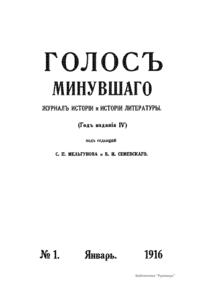 «Голос Минувшего» — журнал истории и истории литературы либерально-народнического направления, издававшийся в Москве с 1913 по 1923 год. Издателем журнала в 1913–1922 годах были известные русские историки, публицисты и общественные деятели С. П. Мельгунов (1880–1956) и В. И. Семевский (1848–1916). В редакционную коллегию также входили А. К. Дживелегов и П. Н. Сакулин. До 1919 «Голос минувшего» выходил ежемесячно, затем нерегулярно, всего было выпущено 65 номеров. В журнале публиковались интереснейшие материалы, посвященные истории литературы и общественных движений в России второй половины XVIII – начала XX веков. Здесь можно найти: статьи по вопросам русской и всеобщей истории, истории литературы, философии, искусства и археологии. В издании представлены: историческая беллетристика, биографии русских и иностранных деятелей, критика и библиография, новости русской и иностранной науки, обзор журналов русских и иностранных, хроника, мемуары, записки, дневники и письма декабристов, видных народовольцев и эсеров, крупных общественных деятелей и царских администраторов, писателей, военачальников и др. Среди авторов: Е. В. Тарле, А. Ф. Кони, А. К. Дживелегов, А. А. Кизеветтер, В. Г. Короленко и др. Стремление сделать журнал интересным для более широкого круга читателей способствовало тому, что в «Голосе Минувшего», хоть и в ограниченном количестве, печатались статьи по истории искусства и помещались иллюстрации: портреты, картины и рисунки, не знакомые или мало знакомые публике. В журнале опубликован целый ряд интересных писем, документов и воспоминаний. Абсолютное большинство текстов никогда не переиздавалось. Журнал снабжен указателями имен за 1913–1922 годы и систематическим указателем содержания.