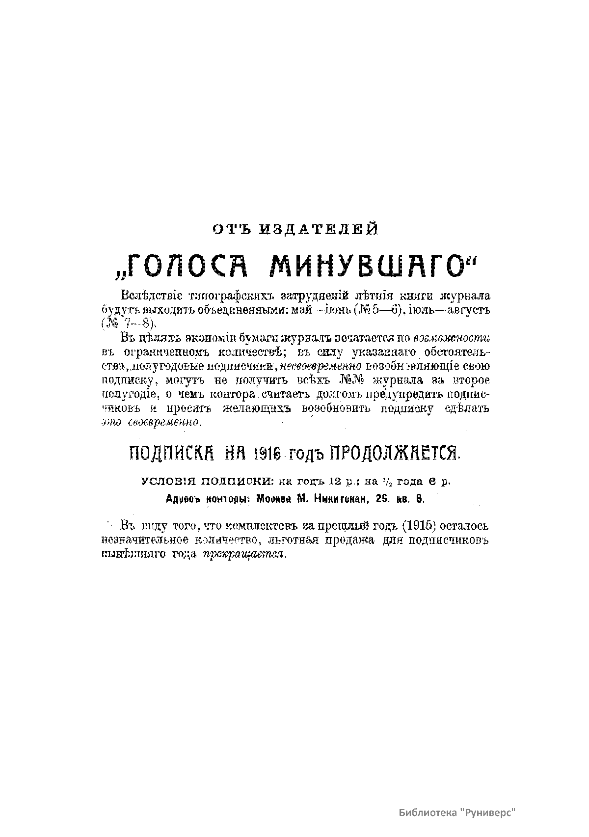 Голосъ минувшаго. 1916. 5-6. Май-Iюнь