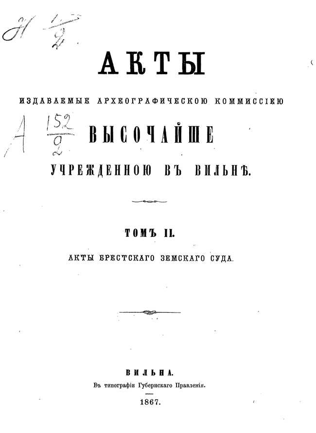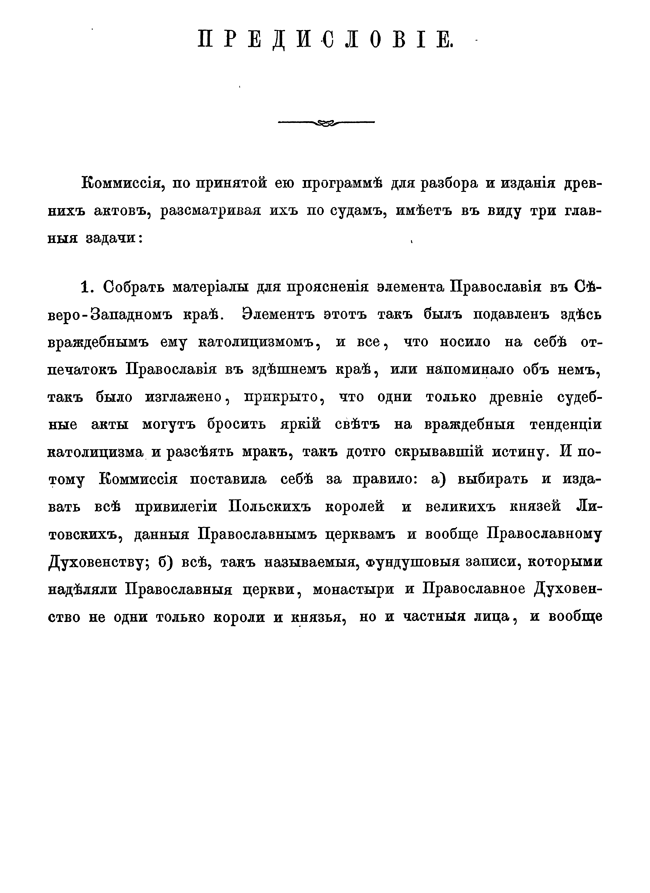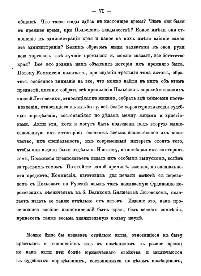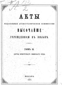 Обилие актов и документов Виленского центрального архива (19244 актовых книг) и желание исследовать прошлое Литвы, которая и в старину принадлежала России, вызвали после 1863 года учреждение особой комиссии для разбора в городе Вильне древних актов.