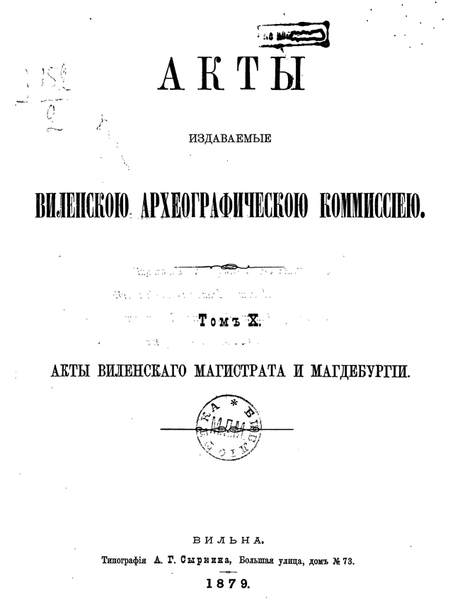 Обилие актов и документов Виленского центрального архива (19244 актовых книг) и желание исследовать прошлое Литвы, которая и в старину принадлежала России, вызвали после 1863 года учреждение особой комиссии для разбора в городе Вильне древних актов.