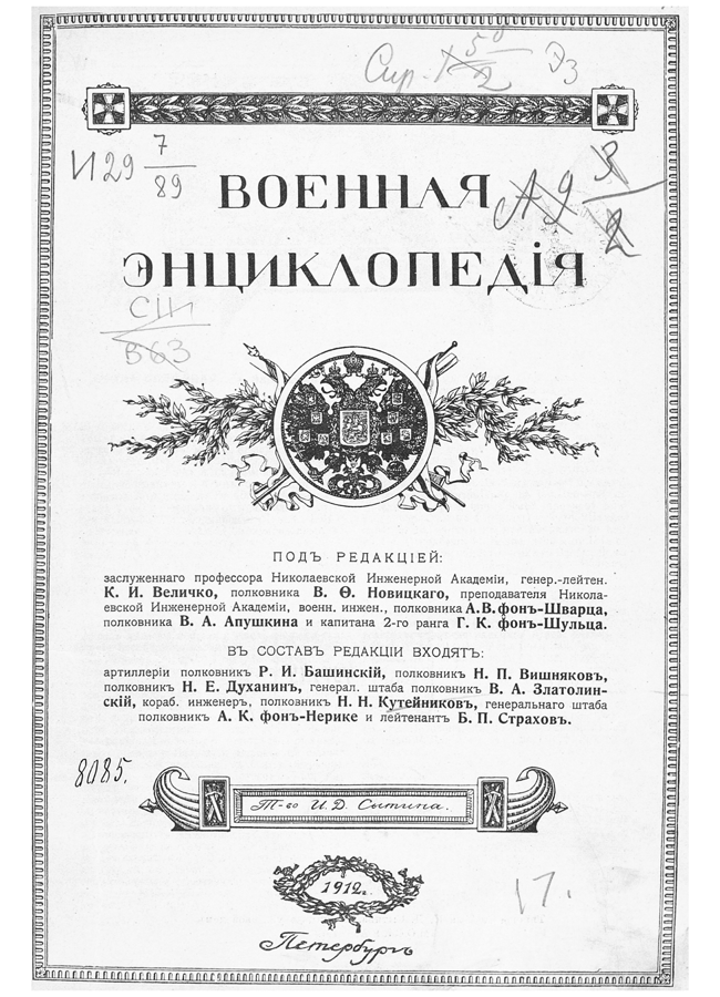 Благодаря издателю Ивану Дмитриевичу Сытину (1851-1934) энциклопедия по изяществу издания превосходила все подобные европейские издания того времени. В работе над энциклопедией принимали участие многие ведущие военные специалисты России, среди них особо выделяются генерал-майор А. Н. Апухтин, генерал-лейтенант М. М. Бородкин, генерал-майор И. И. Защук, капитан 2-го ранга П. И. Белавенец, полковник Н. М. Затворницкий, полковник П. Н. Краснов, генерал-лейтенанты А. П. Михневич, полковник А. Е. Снесарев, капитан В. К. Судравский и многие другие.