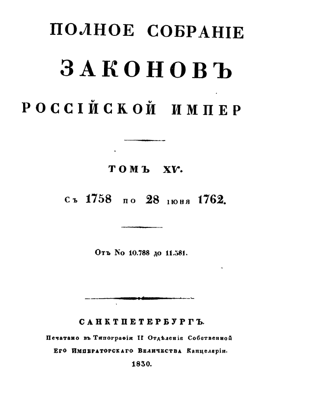Полное собрание законов Российской Империи. Собрание Первое. Том XV