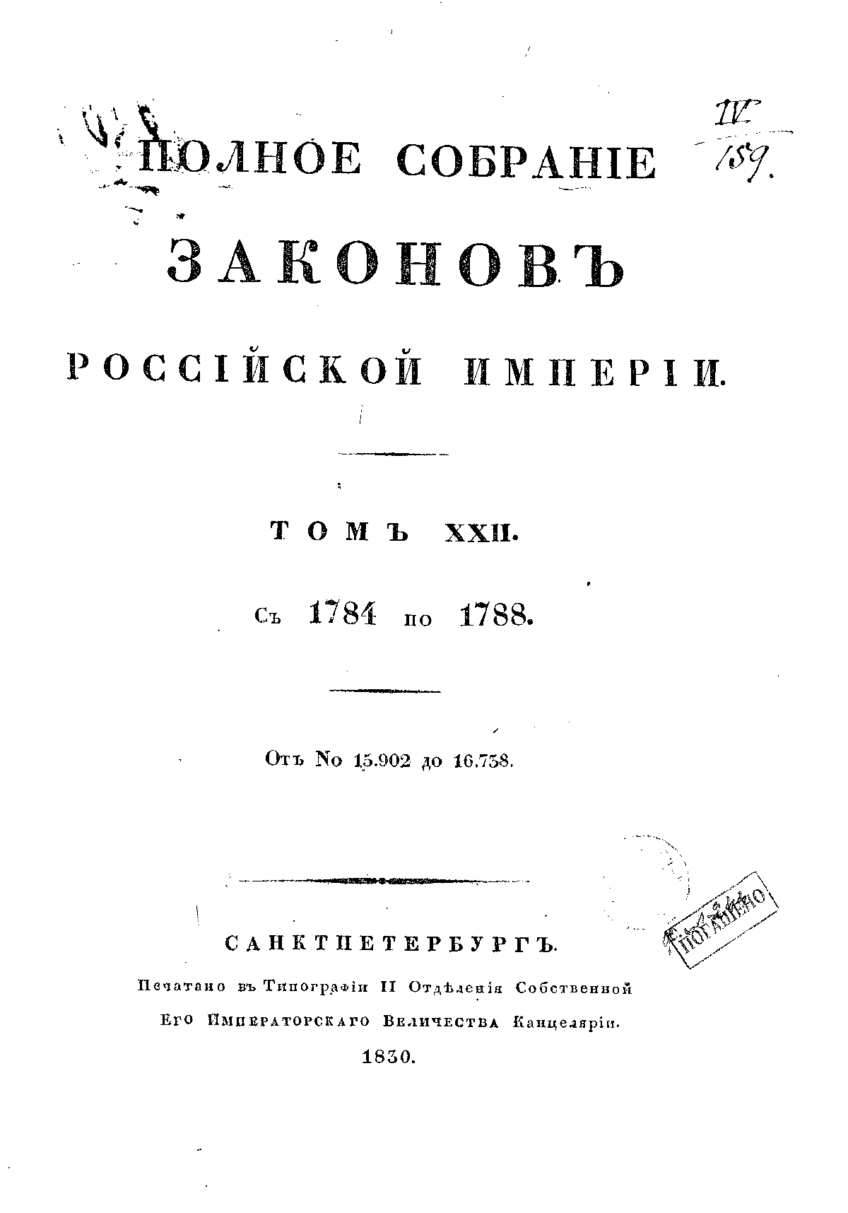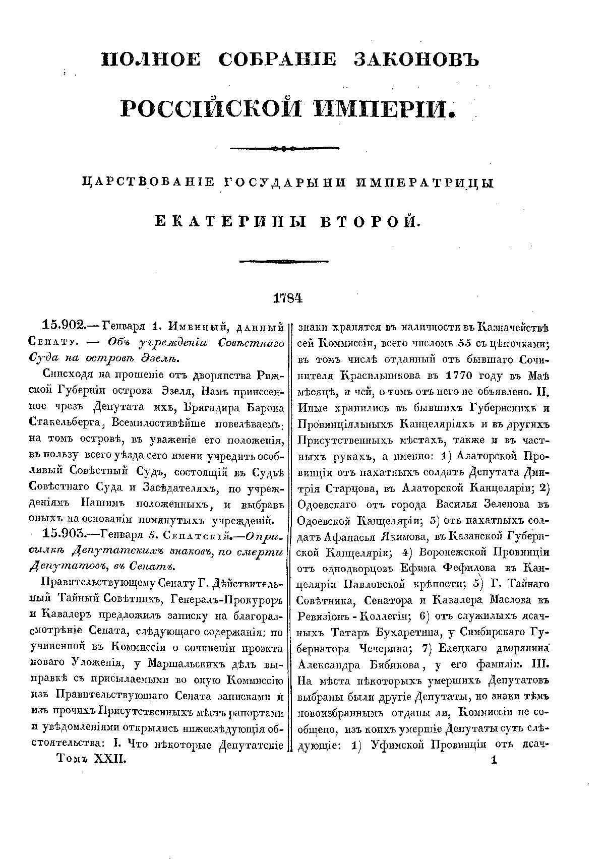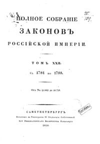 Полное собрание законов Российской Империи. Собрание Первое. Том XXII