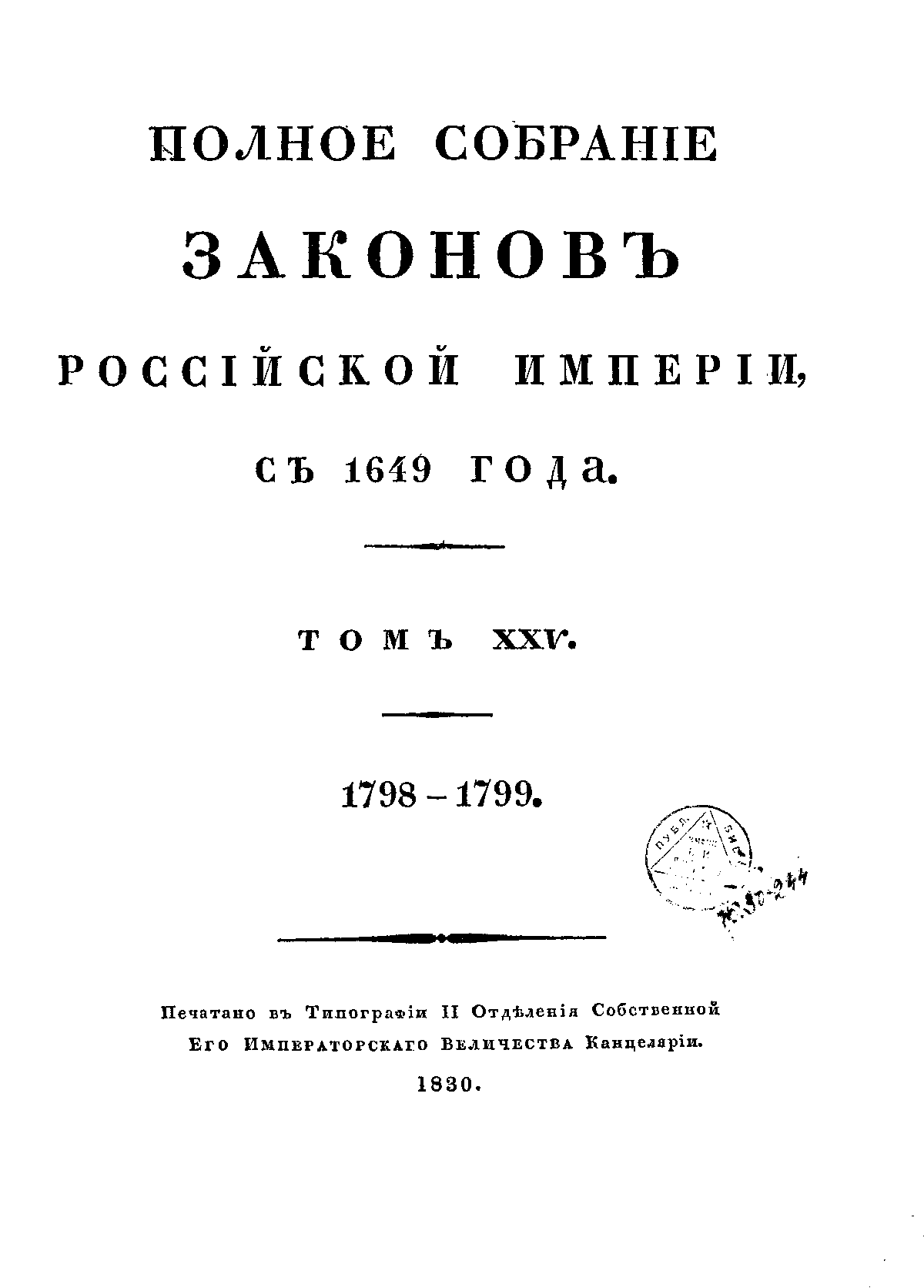 Полное собрание законов Российской Империи. Собрание Первое. Том XXV