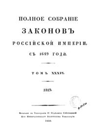 Полное собрание законов Российской Империи. Собрание Первое. Том XXXVI