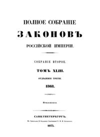 Полное собрание законов Российской Империи. Собрание Второе. Том XLIII. Отделение 3