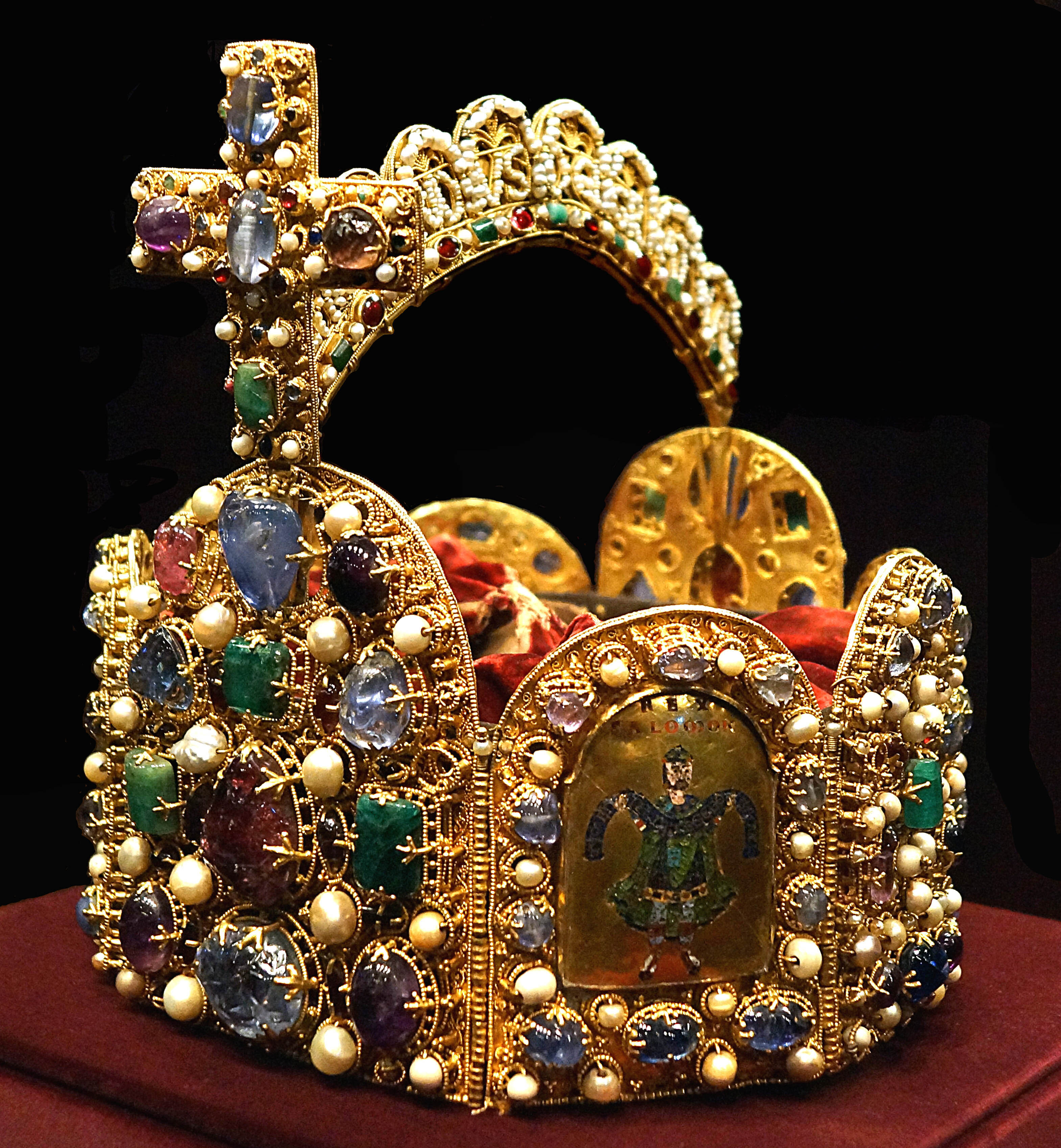 23 октября 1520 года Карл был коронован в Ахене. При этом Карл V провозгласил себя и «избранным» императором Священной Римской империи, таким образом лишая папский престол прерогативы назначения и коронации императоров. Общего признания за собой этого титула он добился позже, после побед над Францией и Римом. В итоге он всё же был официально коронован императором в 1530 году папой Климентом VII в Болонье. Это был последний случай коронации императоров папами. ...Средневековые хроники сохранили множество упоминаний о регалиях, использовавшихся императорами Священной Римской империи при коронациях, в торжественных случаях, в различных церемониях и т. п. Эти регалии — имперские клейноды (Reichskleinodien, Reichsinsignien или Reichsschatz), первоначально включали в себя имперскую корону (Reichskrone), Священное копье (копье сотника Лонгина, или копье Судьбы), имперский крест, скипетр и державу. Позже к ним добавился коронационный меч, а еще позже набор императорских регалий разросся до тридцати различных предметов. Сегодня эта уникальная коллекция представляет собой наиболее полный и единственный в своем роде комплект монарших регалий, целиком сохранившихся от эпохи Средневековья. Некоторые из них имеют тысячелетний возраст. С 1424 года императорские клейноды обычно хранились в Нюрнберге, а меньшая их часть — в Аахене. В число «нюрнбергских клейнодов» входили имперская корона, держава, скипетр, имперский меч (меч Святого Маврикия), церемониальный меч, имперский крест, Священное копье, коронационные облачения и набор реликвариев; все эти клейноды могли покидать город только для коронации очередного императора. В Аахене хранились сабля Карла Великого, имперская Библия и так называемый кошель святого Стефана. До сих пор неизвестно, когда и каким образом эти предметы вошли в число имперских регалий и с каких пор они находились в Аахене; есть предположение, что Оттон I извлек их из могилы Карла Великого. В 1796 году, в связи с началом наполеоновских войн, императорские реликвии в целях безопасности были вывезены в Вену и остаются здесь до сего дня. Города Аахен и Нюрнберг неоднократно пытались востребовать регалии обратно, но всякий раз эти требования были отвергнуты. Лишь после «аншлюса» Австрии нацистской Германией в 1938 году регалии на несколько лет покинули Вену: по приказу Гитлера их вывезли в Нюрнберг. В конце войны американские войска нашли клейноды укрытыми в подземном бункере, и в 1946 году они вернулись в австрийскую столицу. В настоящее время реликвии императоров хранятся и демонстрируются во дворце Хофбург, где им положено храниться до тех пор, «пока не возродится Священная Римская империя германской нации». Идентичные копии имперской короны и наиболее важных регалий можно увидеть ныне в Аахене в Коронационном зале бывшего дворца Карла Великого (ныне городская ратуша) и в историческом музее Франкфурта (большая часть императоров короновалась в соборе этого города), а также в замке Трифельс в Рейнланде, где в эпоху Средневековья хранилась императорская корона. В существующем виде клейноды Священной Римской империи включают в себя имперскую корону (Reichskrone, 2-я пол. X столетия), имперский крест (Reichskreuz, ок. 1024–1025 гг.), Священное копье (Heilige Lanze, VIII–IX вв.), державу (Reichsapfel, конец XII столетия), скипетр (Zepter, 1-я половина XIV столетия), имперский меч (Reichsschwert, 2-я треть XI ст