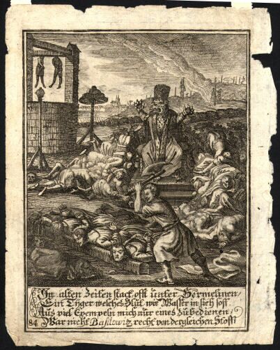 «Февраля 12, в Понедельник второй недели Великого Поста, на рассвете, Государь призвал к себе остальных именитых Новогородцев, из каждой улицы по одному человеку: они явились как тени, бледные, изнуренные ужасом, ожидая смерти. Но Царь возрел на них оком милостивым и кротким: гнев, ярость, дотоле пылавшие в глазах его, как страшный метеор, угасли. Иоанн сказал тихо: "Мужи Новогородские, все доселе живущие! Молите Господа о нашем благочестивом Царском державстве, о христолюбивом воинстве, да побеждаем всех врагов видимых и невидимых! Суди Бог изменнику моему, вашему Архиепископу Пимену и злым его советникам! На них, на них взыщется кровь, здесь излиянная. Да умолкнет плач и стенание; да утишится скорбь и горесть! Живите и благоденствуйте в сем граде! Вместо себя оставляю вам Правителя Боярина и Воеводу моего Князя Петра Данииловича Пронского. Идите в домы свои с миром!" Еще судьба Архиепископа не решилась: его посадили на белую кобылу в худой одежде, с волынкою, с бубном в руках как шута или скомороха, возили из улицы в улицу и за крепкою стражею отвезли в Москву. Иоанн немедленно удалился от Новагорода дорогою Псковскою, отправив несметную добычу святотатства и грабежа в столицу. Некому было жалеть о богатстве похищенном: кто остался жив, благодарил Бога или не помнил себя в исступлении! Уверяют, что граждан и сельских жителей изгибло тогда не менее шестидесяти тысяч. Кровавый Волхов, запруженный телами и членами истерзанных людей, долго не мог пронести их в Ладожское озеро. Голод и болезни довершили казнь Иоаннову, так что Иереи в течение шести или семи месяцев не успевали погребать мертвых: бросали их в яму без всяких обрядов. Наконец Новгород как бы пробудился от мертвого оцепенения: 8 Сентября все, еще живые, Духовенство, миряне, собралися в поле у церкви Рождества Христова служить общую панихиду за усопших над тамошнею скудельницею, где лежало 10000 неотпетых тел Христианских! (В первом месте стоял нищий старец Иоанн Жгальцо, который один с молитвою предавал мертвых земле в сие ужасное время.) - Опустел Великий Новгород. Знатная часть Торговой, некогда многолюдной стороны обратилась в площадь, где, сломав все уже необитаемые домы, заложили дворец Государев».