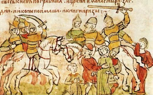 «Ярослав Луцкий въехал в Киев, а сын Андреев возвратился в Суздальский Владимир с неописанным стыдом, без сомнения, весьма чувствительным для отца; но, умея повелевать движениями своей души, Андрей не изъявил ни горести, ни досады и снес уничижение с кротостию Христианина, приписывая оное, может быть - равно как и бедственную осаду Новагорода - гневу Божию на Суздальцев за опустошение святых церквей Киевских в 1169 году. Сия мысль смирила, кажется, его гордость. Он не хотел упорствовать в злобе на Ростиславичей, не думал мстить Ярославу за измену и не мешал ему спокойно властвовать в Киеве, к прискорбию Святослава Черниговского, коего искусство государственное состояло в том, чтобы ссорить Мономаховых потомков. [1174 г.] Сей Князь, не имея надежды вооружить Андрея, начал требовать удела от Ярослава, говоря: "Ты обещал под Вышегородом дать мне область, когда сядешь на престоле Святого Владимира; ныне, сидя на оном - право ли, криво ли, не знаю, - исполни обещание. У нас одни предки: я не Лях, не Угрин". Ярослав сухо ответствовал, что он господствует в Киеве не по милости Ольговичей и что род их должен искать Уделов только на левом берегу Днепра. Князь Черниговский замолчал; но в тишине собрал войско, внезапно изгнал Ярослава, пленил его жену, сына, Бояр и, ограбив дворец, ушел назад. Киевляне оставались равнодушными зрителями сего разбоя в ожидании, кто захочет быть их Князем. Ярослав возвратился; и, думая, что они сами тайно призвали Святослава, обложил данию всех граждан, даже Попов, Монахов, иноземных купцов, Католиков. "Мне надобно серебро, чтобы выкупить жену и сына", говорил озлобленный Князь и, наказав Киевлян, виновных единственно своею к нему холодностию, заключил мир с Святославом, который жег тогда область брата, Олега Северского. Сей мир казался Ростиславичам малодушием, а тягостная дань, возложенная на Киев, несправедливостию. Огорченные Андреем, но внутренно уважая в нем старейшего из Князей, достойного быть их Главою, они изъявили ему желание забыть прошедшее и взаимным искренним согласием успокоить южную Россию: для того хотели, чтобы Великий Князь, как ее законный покровитель, снова уступил Киев Роману Смоленскому, и брали на себя выслать оттуда Ярослава, не любимого народом и неспособного блюсти древнюю столицу Государства. Андрей, довольный их уважением, обещал посоветоваться с братьями, Михаилом, Всеволодом; писал к ним в Торческ и не дождался ответа, кончив жизнь от руки своих любимцев».