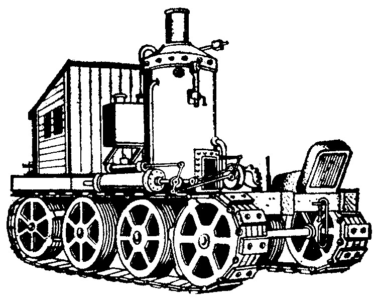 «В эти годы Блинов создал оригинальный одноцилиндровый насос очень удачной конструкции, оказавшийся более мощным, нежели применявшийся до него двухцилиндровые насосы; построил быстроходный буксир; изготовлял различные металлические сельскохозяйственные орудия: своей конструкции взамен устаревших деревянных и выполнял раз¬личные ремонтные работы. Постепенно чертежи «вагона с бесконечными рельсами» были закончены но надо было еще закрепить, свои права привилегией, а это было для крестьянина очень сложным и малонадежным делом, не обещающим успеха. Чтобы облегчить прохождение патентной заявки через канцелярии министерства, написанная Блиновым заявка на эту привилегию 15 марта 1878 года подается в Департамент торговли и мануфактур от имени купца Канунникова. 20 сентября 1879 года Блинов получил привилегию за которую ему нужно было уплатить 450 рублей. Эти деньги за него внес Канунников. Подробное описание привилегии № 2245 находится в «Своде привилегий» помещенном в журнале Записки Русского технического общества» за 1879 год, а также в официальном издании «Свод привилегий выдаваемых по Департаменту Торговли и Мануфактур» том III-IV изданном в 1880 г. Вот эта привилегия: «Привилегия, выданная из Департамента Торговли и Мануфактур в 1879 году крестьянину Федору Блинову на особого устройства вагон с бесконечными рельсами, для перевозки грузов по шоссейным и проселочным дорогам. Купец Канунников, 15 Марта 1878 года вошел в Департамент Торговли и Мануфактур с прошением о выдаче крестьянину Федору Блинову проживающему в Саратовской губернии в Вольском уезде в деревне Никольской десятилетней привилегии на особого устройства вагон с бесконечными рельсами для перевозки по шоссейным и проселочным дорогам, состоит из обыкновенного кузова и рамы установленных на двух поперечныx рамах покоящихся непосредственно на подвесных рессорах, так что оси с поперечными рамами могут вращаться; вагонные колеса делаются без гребней и катятся по желобчатым бесконеным рельсам. Рельсы эти составляются из двух рядов железных звеньев, из коих нижний ряд заменяет шпалы. Каждый бесконечный рельс идет сначала по грунту под обоими колесами, затем обходит два спицевые блока, помещаемые на пе-реднем и заднем конце вагона и затем опирается на вагонные колеса. По рассмотрению изобретения сего в Техническо-Инспекторском Ко¬митете Управления Железных Дорог и в Совете Торговли и Мануфактур Управляющий Министерством Финансов на основании 149 ст. Уст. Промышл. Св. Зак. т. XI, предваряя что Правительство не ручается ни в точной принадлежности изобретения предъявителю, ни в утехах онаго, и удостоверяя что на сие изобретение прежде сего никому другому в России привилегии выдано не было, дает крестьянину Федору Блинову сию привилегию на десятилетнее от нижеписанного числа исключительное право, вышеозначенное изобретение, по представленным описанию и чертежу во всей Российской Империи употреблять, продавать, дарить, завещать и иным образом уступать другому на законном основании, но с тем, чтобы изобретение сие по 152 ст. того же Устава было приведено в полное действие не позже, как в продолжение четверга срочного времени на которое выдана привилегия, и затем, в течение шести месяцев после сего, было представлено в Департамент Торговли и Мануфактур удостоверение местного 