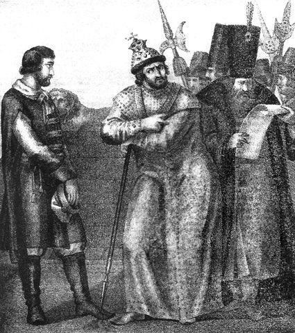 «Прежде всего Курбский обвинил церковных руководителей "осифлян" (последователей Иосифа Волоцкого, сторонника богатой и сильной церкви) в том, что они прдкуплены царем и богатства ради угодничают перед властями. Нет больше в России, писал он, святителей, которые бы спасли гонимую братию и обличили бы царя в его "законопреступных" делах. Слава Курбского свидетельствовали о том, что распри между царем и знатью привели к ожесточенной вражде. Могущественные вассалы не желали мириться с покушениями монарха на их власть и имущество. Курбский дерзко обвинял "державного" правителя в кровожадности, в том, что своей свирепостью он превзошел "зверей кровоядцев". Из-за нестерпимых мук, продолжал боярин, некоторым придется "без вести бегуном ото отечества быть". Этот намек вполне объясняет, почему Курбский осмелился изложить на бумаге свои самые затаенные мысли. Он закончил тайное послание в Печоры перед самым побегом в Литву. Озабоченный тем, чтобы оправдать задуманную измену, Курбский встал в позу защитника всех обиженных и угнетенных на Руси, позу критика и обличителя общественных пороков. С желчью писал он о "нерадении державы" и "кривине суда" в стране, печалился о бедственном положении дворян, не имеющих не только "коней, ко бранем уготовленных", но и "дневныя пищи", с удивительным сочувствием отзывался о безмерных страданиях торговцев и крестьян, задавленных податями. "Земледелец все днесь узрим, - писал боярин, - како стражут, безмерными данми продаваеми... и без милосердия биеми" ". В устах Курбского слова сочувствия крестьянам звучали необычно. Ни в одном из своих многочисленных произведений он больше ни единым словом не вспомнил о землепашцах. Из многочисленных судных дел литовского периода известно, как Курбский обращался со своими подданными и соседями. Соседей по имению он нередко бил и грабил, а "купецкий чин" сажал в водяные ямы, кишевшие пиявками, и вымогал у них деньги". Пробыв год на воеводстве в Юрьеве, Курбский 30 апреля 1564 года бежал в литовские владения. Под покровом ночи он спустился по веревке с высокой крепостной стены и с несколькими верными слугами ускакал в ближайший неприятельский замок - Вольмар. По словам американского историка Э. Кинана, русский наместник Ливонии мог бы захватить семью, поскольку он бежал, по крайней мере, на трех лошадях и успел взять двенадцать сумок, набитых добром. В самом ли деле Курбский был столь черствым человеком, с легким сердцем покинувшим жену? В этом можно усомниться. Побег из тщательно охранявшейся крепости был делом исключительно трудным, и Курбский утверждал, что его самого верные слуги вынесли "от гонения на своей вые" (шее). Жену же свою беглец попросту не мог взять с собой. Ливонский хронист Ф. Ниештадт со слов слуги Курбского записал, что боярыня Курбская ждала в то злосчастное время ребенка. В спешке беглец бросил почти все свое имущество. (За рубежом он особенно сожалел о своих воинских доспехах и великолепной библиотеке.) Причиной спешки было то, что московские друзья тайно предупредили боярина о грозящей ему царской опале. Сам Грозный подтвердил основательность опасений Курбского. Его послы сообщили литовскому двору о том, что царь проведал об изменных делах Курбского и хотел было его наказать, но тот убежал за рубеж". Позже в беседе с польским послом Грозный признался, что наме