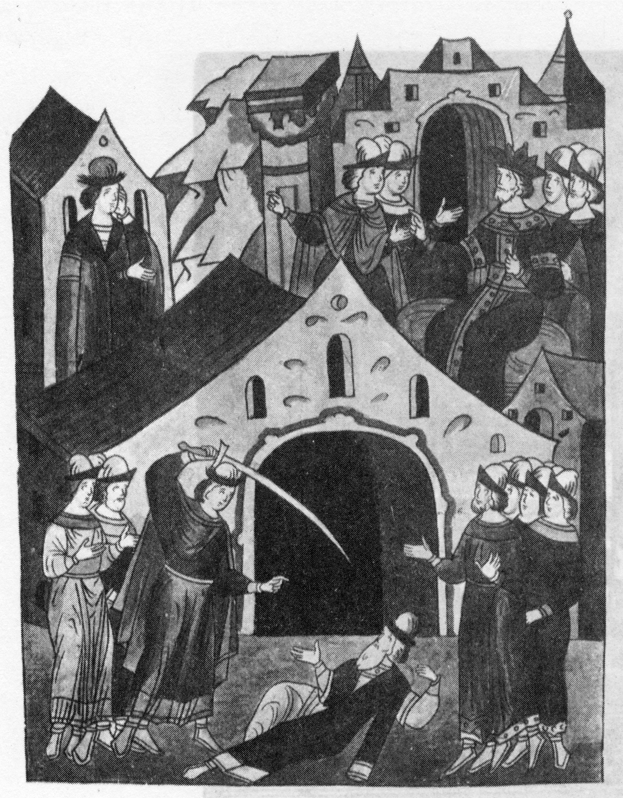 «[1325 г.] В следующий год отправился к Хану и Димитрий. Там они увидели друг друга, и нежный сын, живо представив себе окровавленную тень Михаилову, - затрепетав от ужаса, от гнева, - вонзил меч в убийцу. Георгий испустил дух: а Димитрий, совершив месть, по его чувству справедливую и законную, спокойно ожидал следствий... Так одно злодеяние рождает в мире другое, и виновник первого ответствует за оба, по крайней мере в судилище Вышнего! Тело Георгиево привезли в Москву, где княжил брат его, Иоанн Даниилович, и погребли в церкви Архангела Михаила. Митрополит Петр с четырьмя Епископами совершил сей обряд печальный. Князь Иоанн и самый народ проливал искренние слезы, умиленные столь бедственною кончиною Государя хотя и не добродетельного, однако ж знаменитого умом и славными предками. Новогородцы сожалели об нем: Тверитяне хвалили дело своего Князя, с беспокойством ожидая суда Узбекова. Хан долго молчал. Друзья Князя Московского без сомнения представляли ему, что убийство столь наглое, совершенное пред его глазами, требует наказания, или будет пятном для чести Царской, знаком слабости и поводом к новым опасным своевольствам Князей Российских; что Хан, сверх того, должен вступиться за Георгия как за своего зятя. Прошло десять месяцев. Брат Димитриев, Александр, спокойно возвратился из Орды с Ханскими пошлинниками, надеясь, что дело уже кончилось и что Узбек не думает о мести. Но вдруг вышло грозное повеление, и несчастного Димитрия убили [15 сентября 1326 г.] в Орде (вместе с Князем Новосильским, потомком Михаила Черниговского, обвиненным также в каком-то преступлении). Сия весть, равнодушно принятая в Москве и в Новегороде, огорчила добрых Тверитян, усердных к государям и видевших в юном своем Князе славную жертву любви сыновней. Димитрий Михайлович, прозванием Грозные Очи, смелый, пылкий, имел только 27 лет от рождения; женатый на дочери Князя Литовского, Гедимина, он не оставил детей. Несмотря на казнь Димитриеву, Узбек в знак милости признал его брата Великим Князем Российским: по крайней мере так назван Александр Михайлович в договорной грамоте, коею Новогородцы, не имея тогда главы и терпя от внутренних неустройств, обязались ему повиноваться как законному своему властителю. Сия грамота, писанная в 1327 году, есть повторение Ярославовых и Михаиловых с прибавлением, что Новогородцы уступают Александру села, им самим или Боярами его купленные, если Княжеские Дворяне, господствуя в оных, не будут вмешиваться в судные дела иных волостей и принимать вольных жителей на свою землю. Но милость Узбекова и верность Новогородцев скоро изменились».