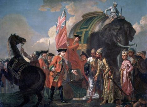 Ну а потом произошло то, что европейцы могли проделать уже давно. Но только к 1750-м они поняли, что подобные вещи реально возможны. Прибывший Клайв установил связи с индийскими банкирами Джагат Сетхом и Амичандом и через них — с военачальником наваба Мир Джафаром, которого Клайв в случае победы обещал сделать навабом Бенгалии. Цитата из книги «История Индии»: «Измена Мир Джафара в битве при Плесси 23 июня 1757 г. помогла трехтысячному войску Клайва (в котором европейцев было всего 800 человек) одержать победу над армией наваба, состоявшей из 18 тыс. всадников и 50 тыс. пехоты. День этой битвы считается англичанами датой установления их господства в Индии.