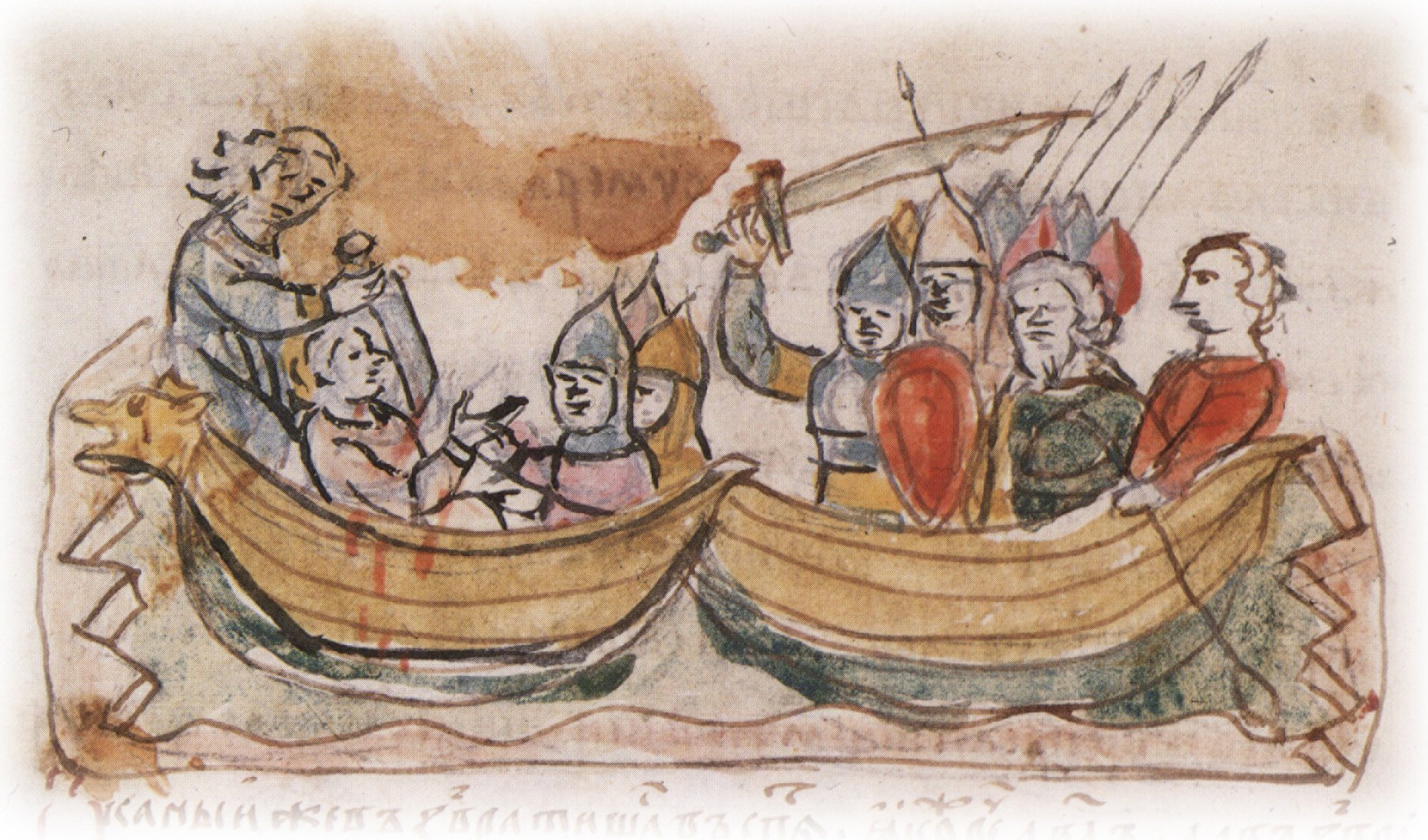 Захват подосланными Святополком Владимировичем убийцами ладьи Глеба Владимировича; убийство поваром Торчином Глеба ножом.