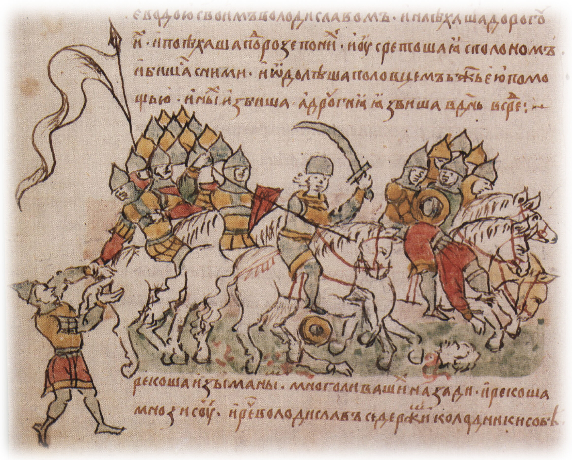 "...и усретоша я с полоном, и бишася с ними... иных избиша, а другия язвиша...".