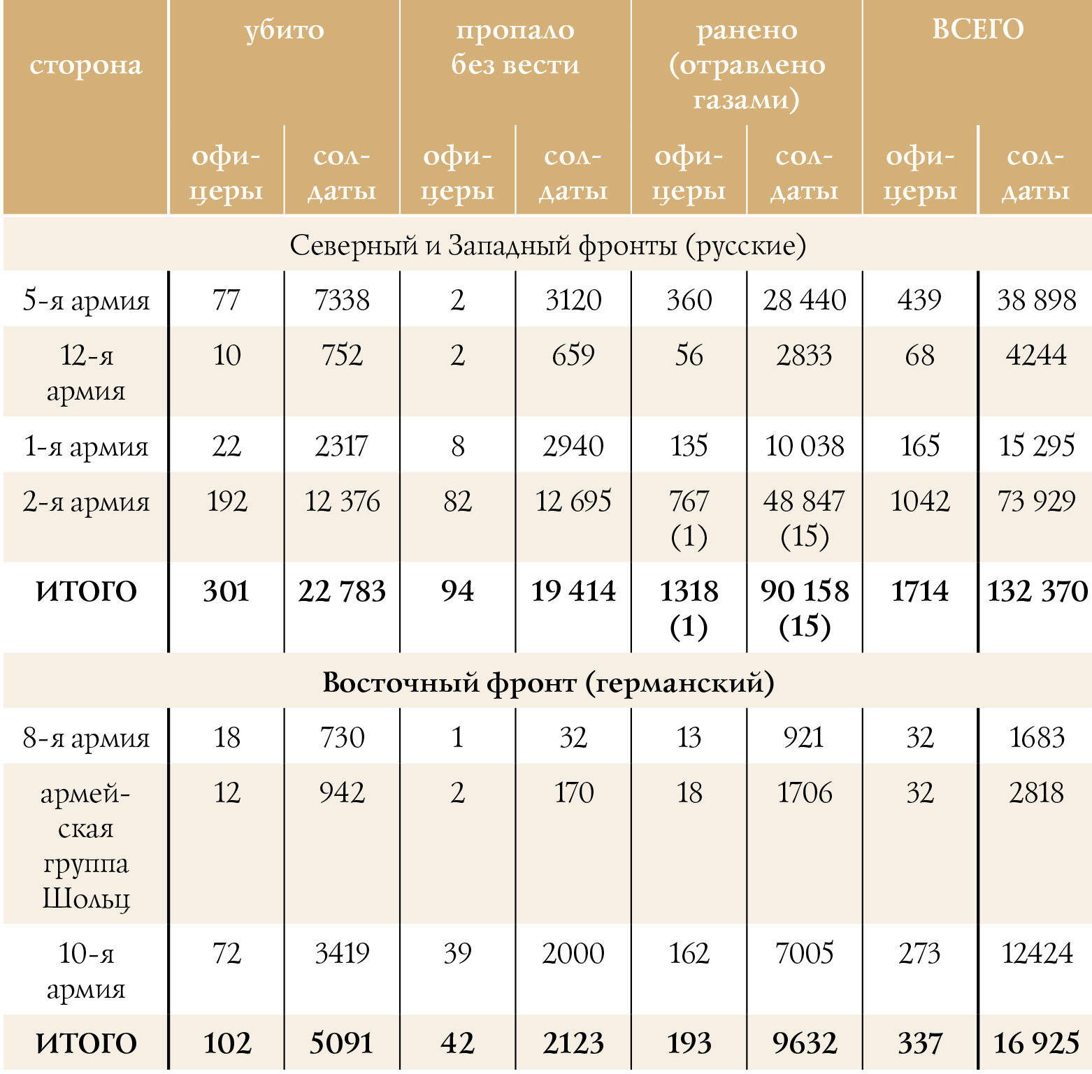 Уточненные потери сторон в мартовском наступлении 5 (18) — 18 (31) марта 1916 г.