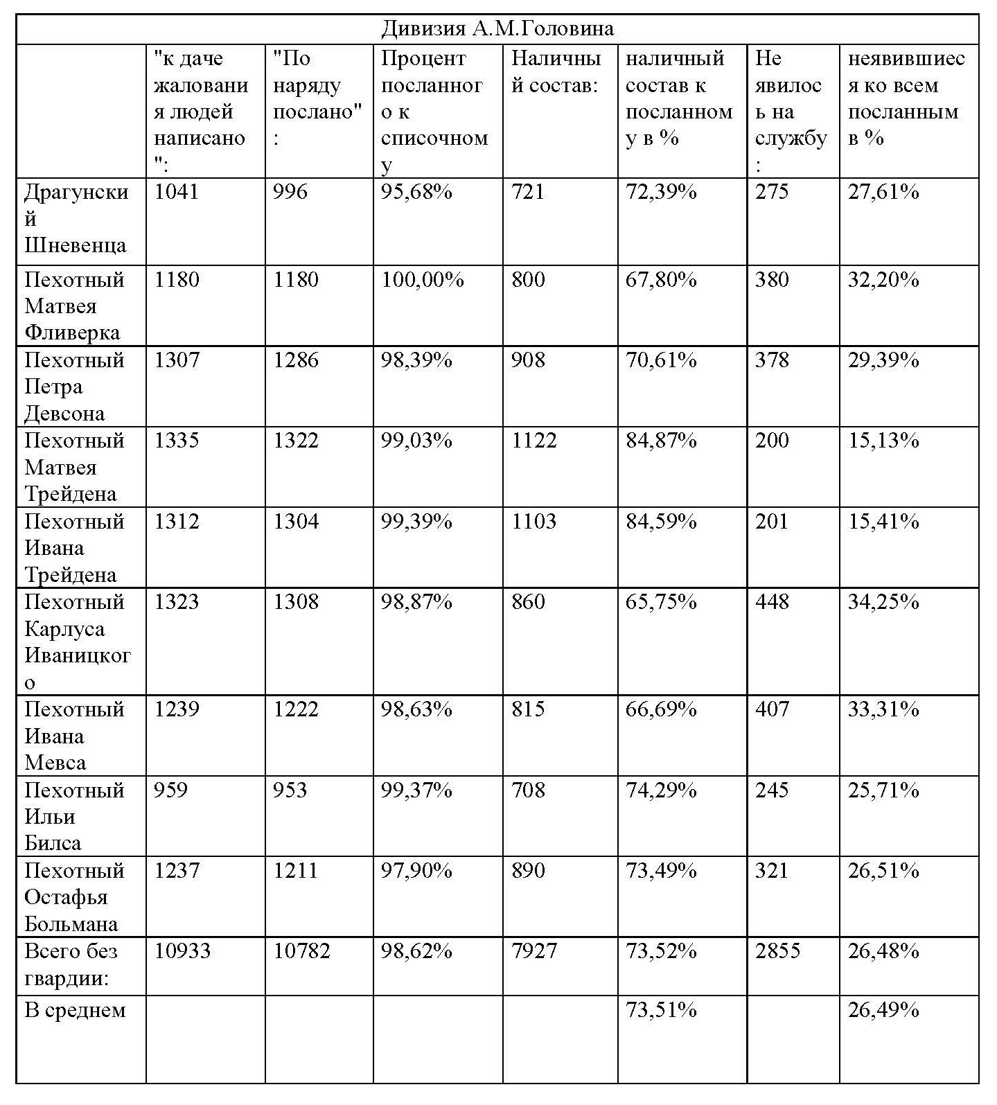 Таблица 1 к статье "База русских полков (1700–1914 гг.). Опыт составления"