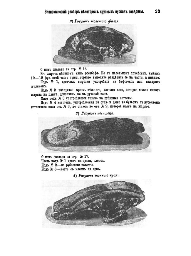 2) Рисунок толстого филея. 3) Рисунок костреца. 4) Рисунок толстого края.