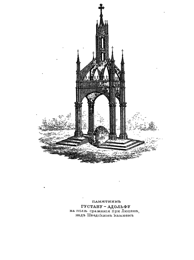 Вид памятника Густавук-Адольфу на поле сражения при Люцене, над Шведским камнем.