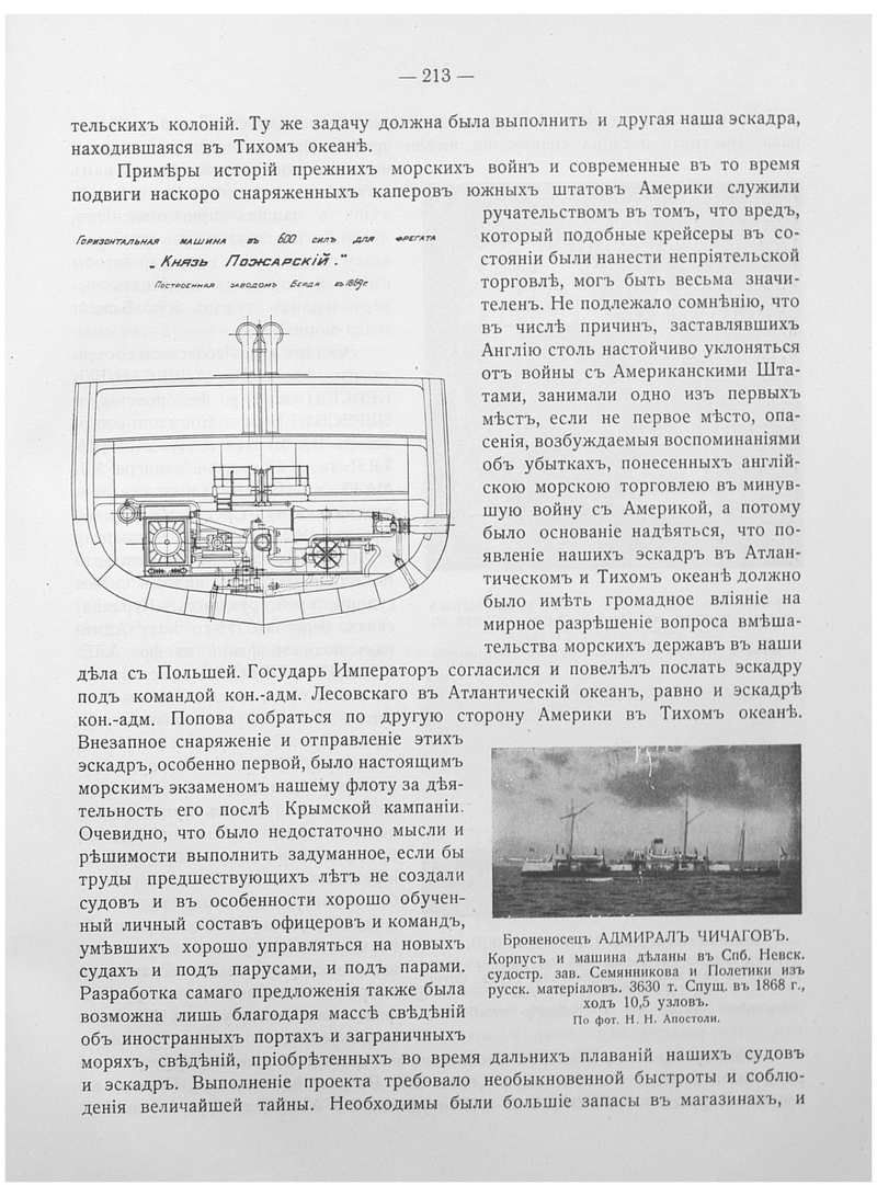 Горизонтальная машина в 600 сил для фрегата "Князь Пожарский". Построена заводом Берда в 1869 г.