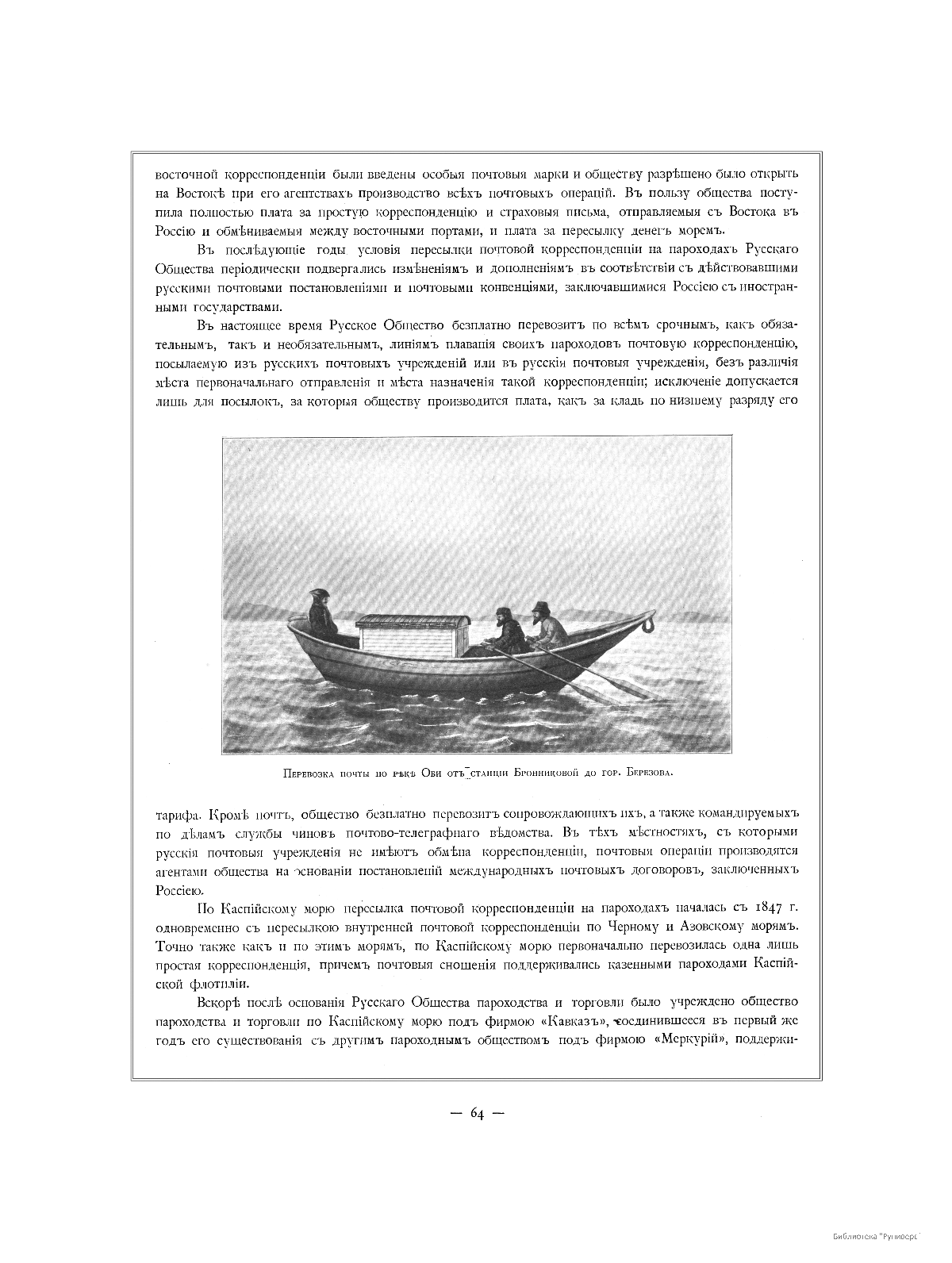 Перевозка почты по реке Оби от станции Бронниковой до гор. Березова.