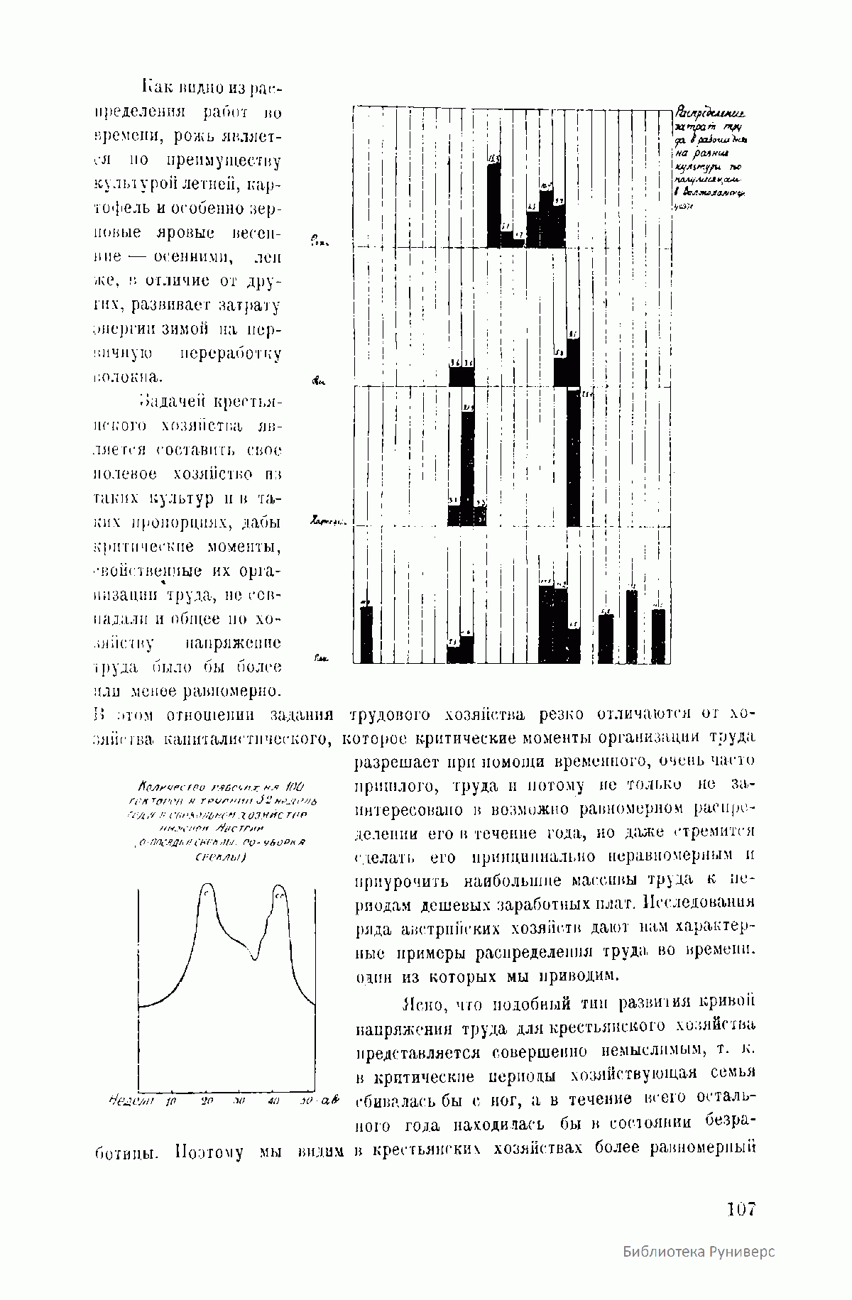 Распределение затрат труда в рабочие дни на разные культуры по полумесяцам в Волоколамском уезде.