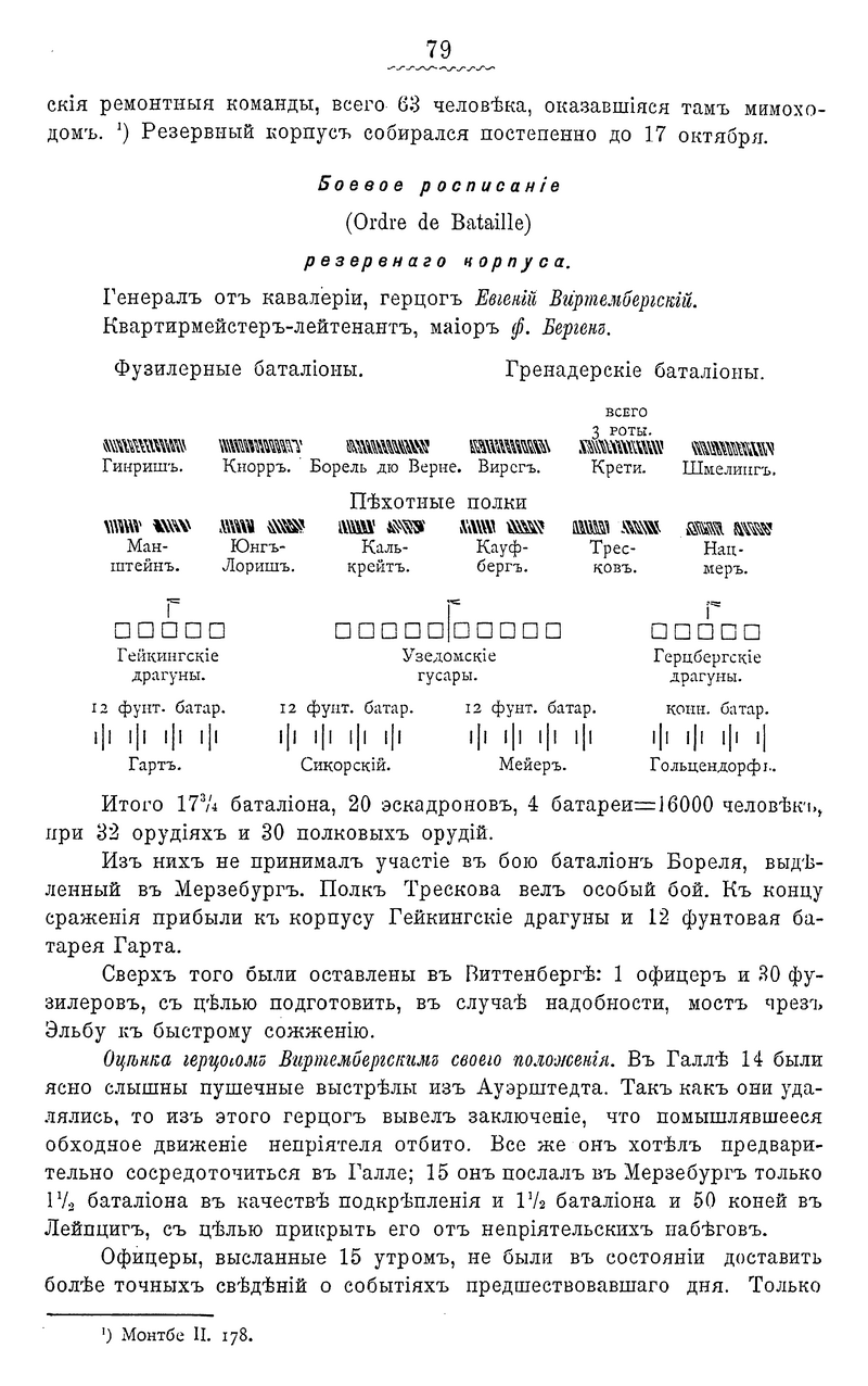 Боевое росписание (Ordre de bataile) резервного корпуса.