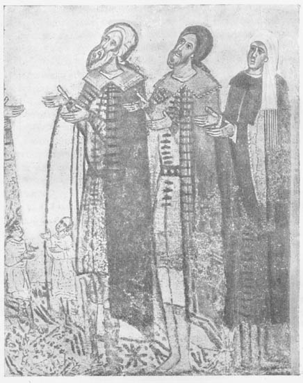 Одежды новгородских бояр XV века. Икона «Молящиеся новгородцы»