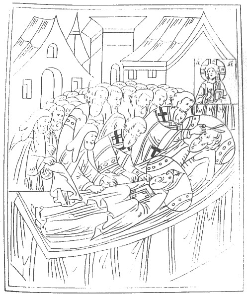 Сие было 3 Декабря [1533 г.]. Игумен Троицкий, Иоасаф, тихо приближился к одру болящего. Василий сказал ему: "Отче! молись за Государство, за моего сына и за бедную мать его! У вас я крестил Иоанна, отдал Угоднику Сергию, клал на гроб Святого, поручил вам особенно: молитесь о младенце Государе!" Он не велел Иоасафу выезжать из Москвы и, пользуясь слабыми остатками жизни, еще призвал Думных Бояр: Шуйских, Воронцова, Тучкова, Глинского, Шигону, Головина и Дьяков...